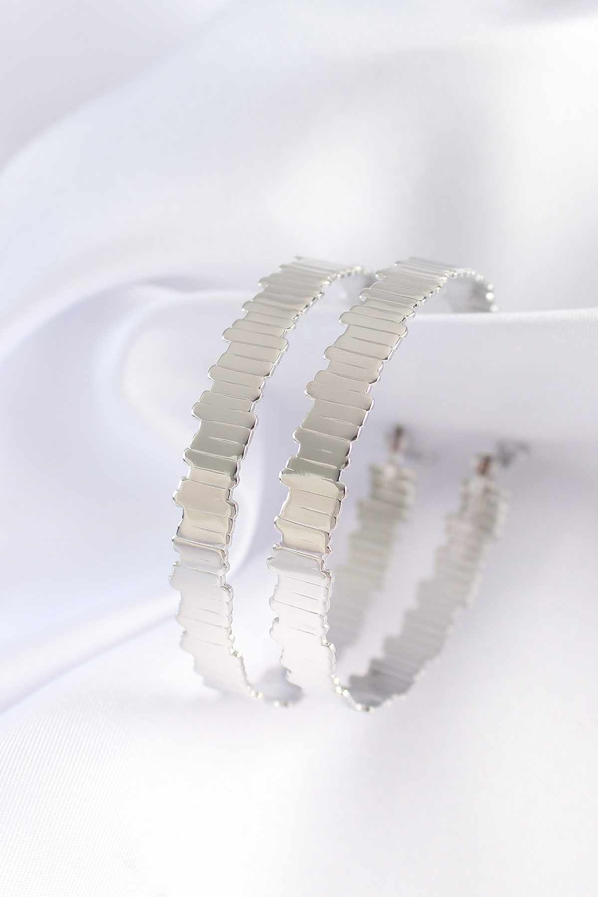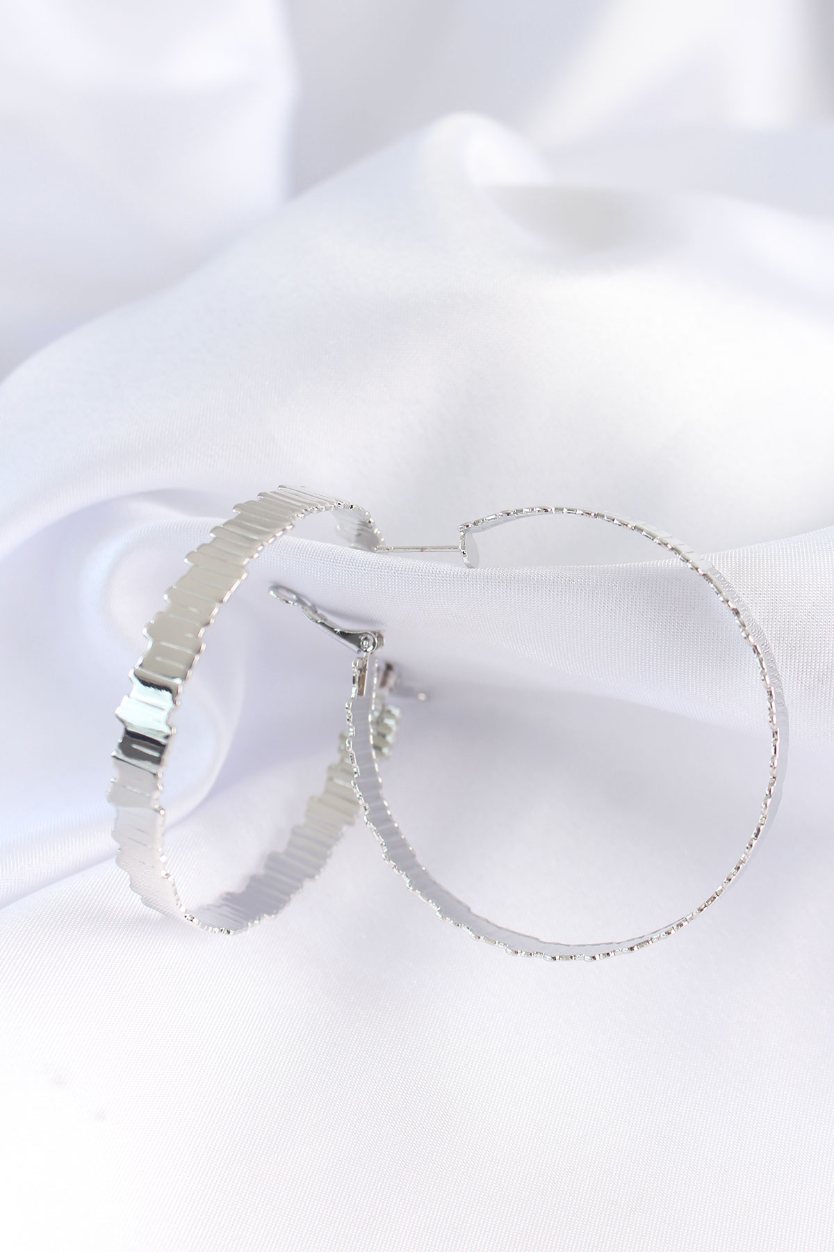 Pirinç Gümüş Renk Tırtıklı Halka Küpe