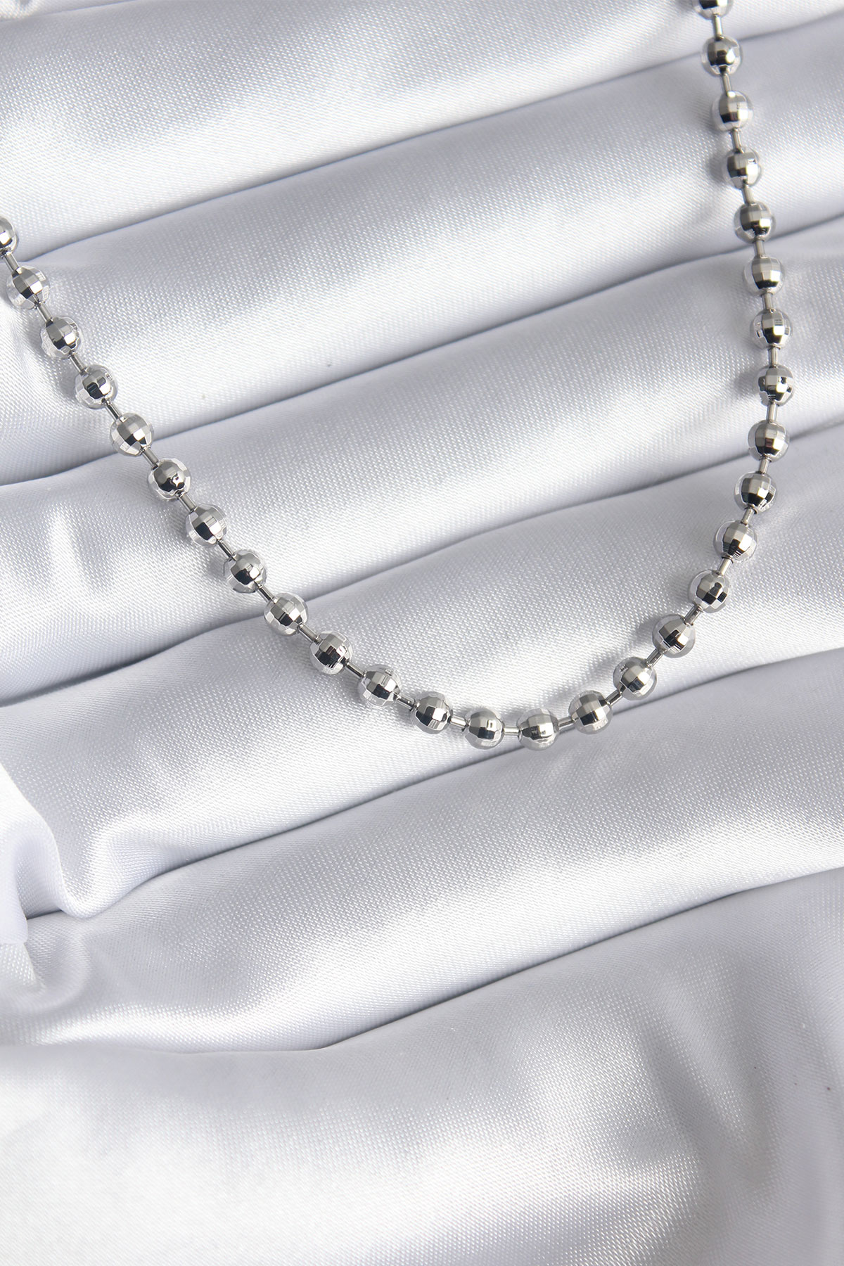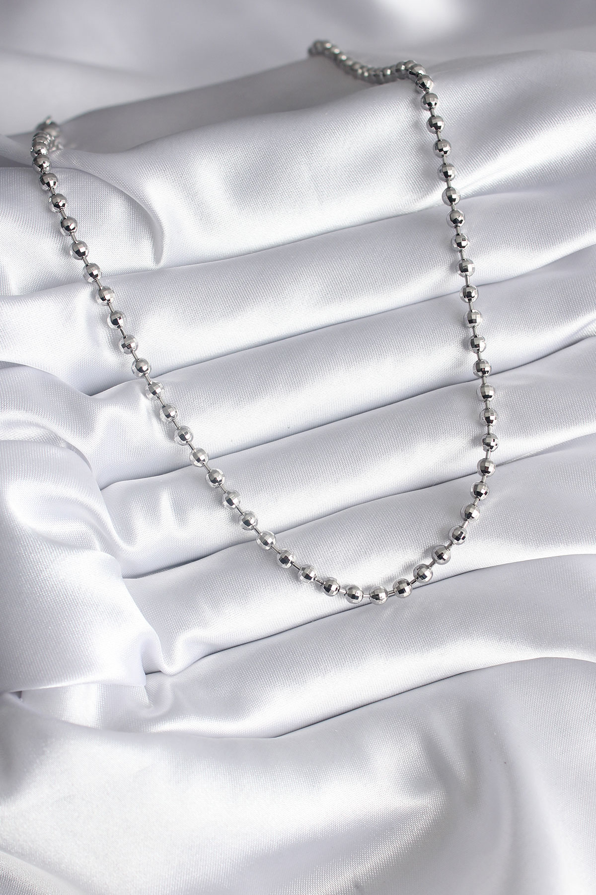 Pirinç Gümüş Renk Topçuk Detay Kadın Kolye