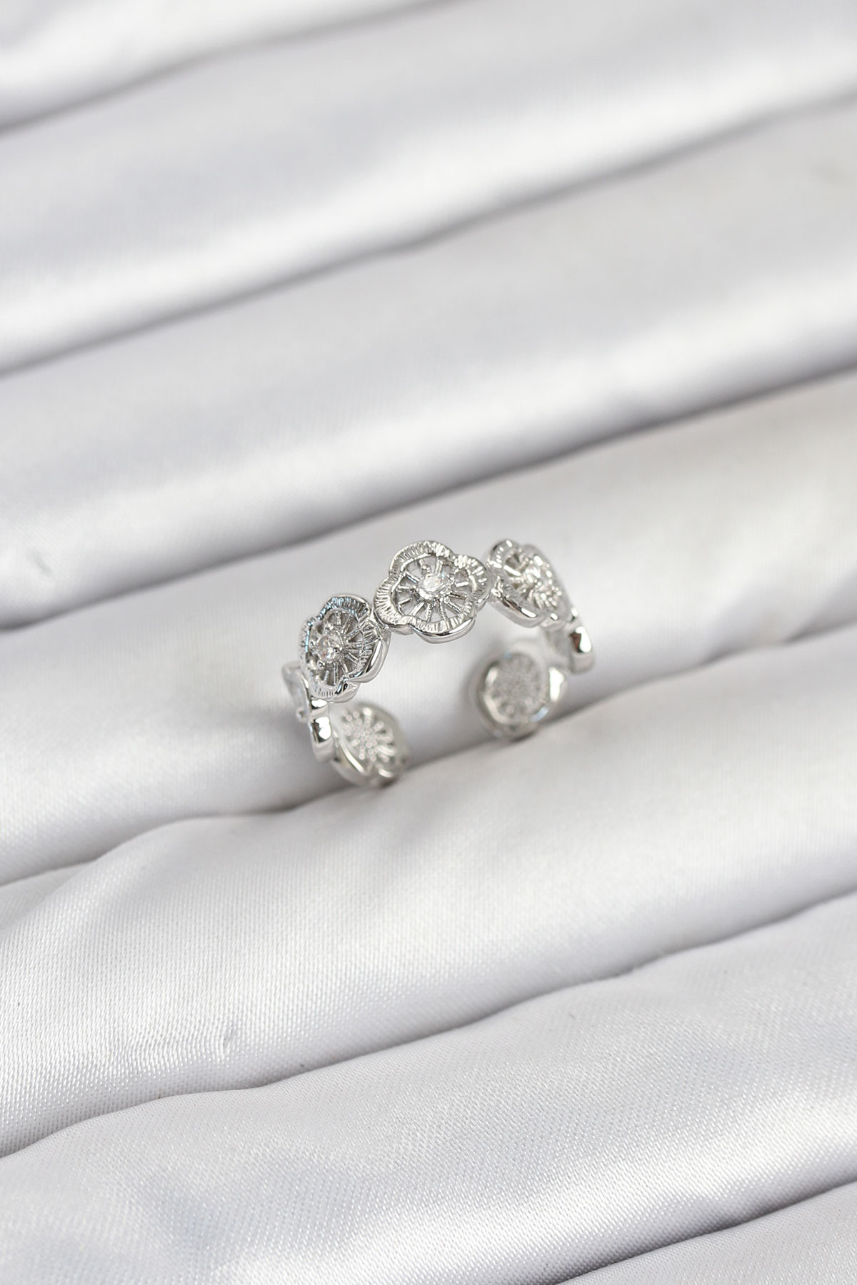 Pirinç Gümüş Renk Yonca Model Kadın Yüzük