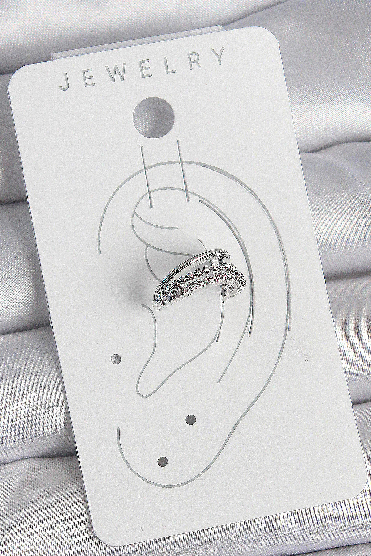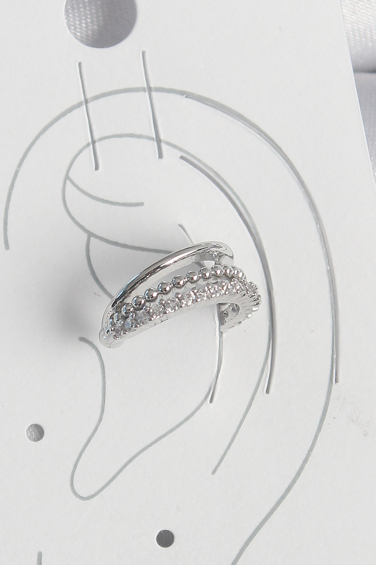Pirinç Gümüş Renk Zirkon Taşlı 3'Lü Sıralı Kadın Kıkırdak Küpe