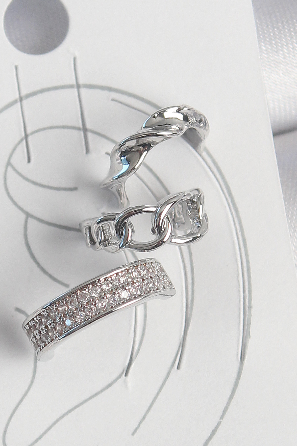 Pirinç Gümüş Renk Zirkon Taşlı 3'Lü Zincir Sarmal Model Kadın Kıkırdak Küpe