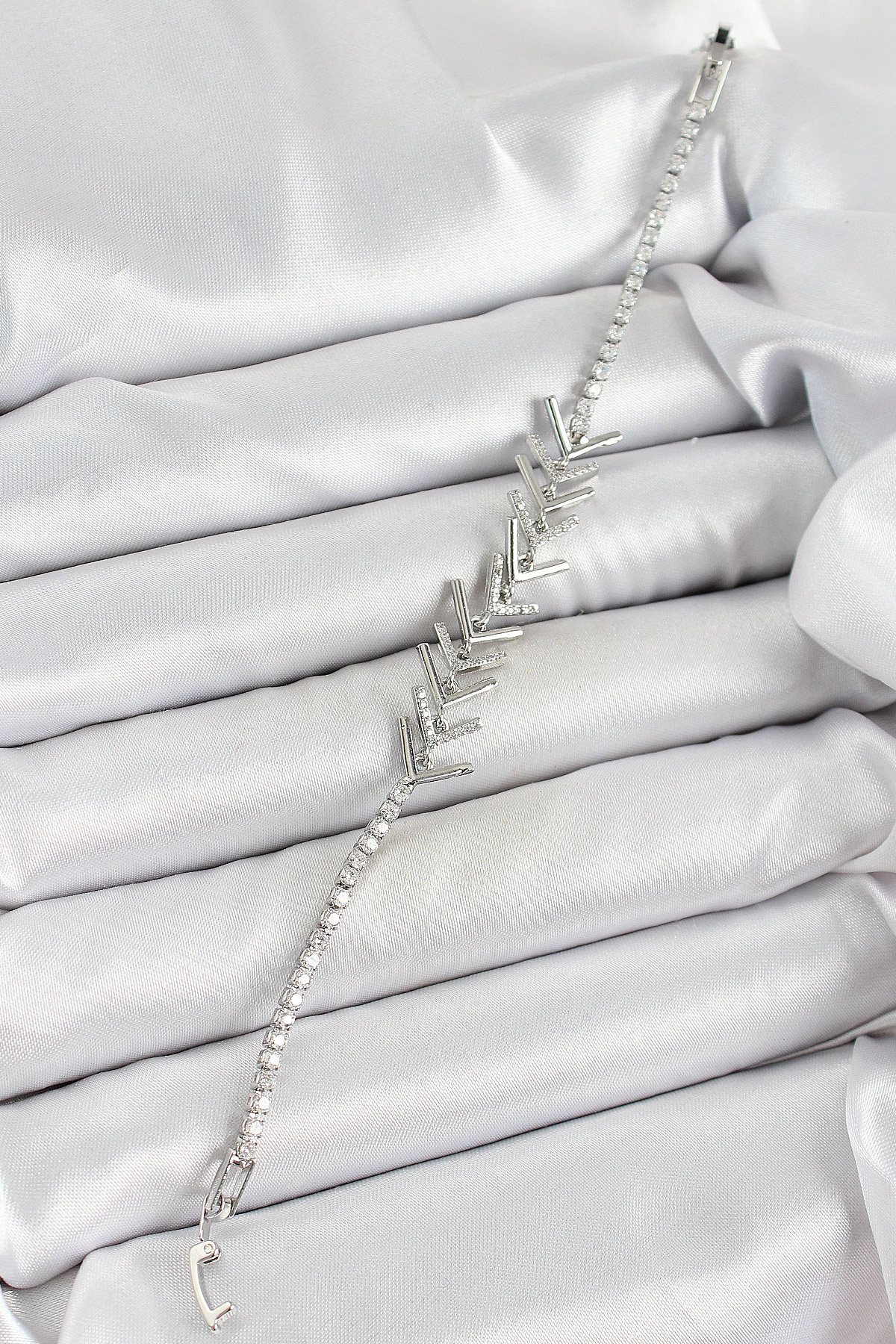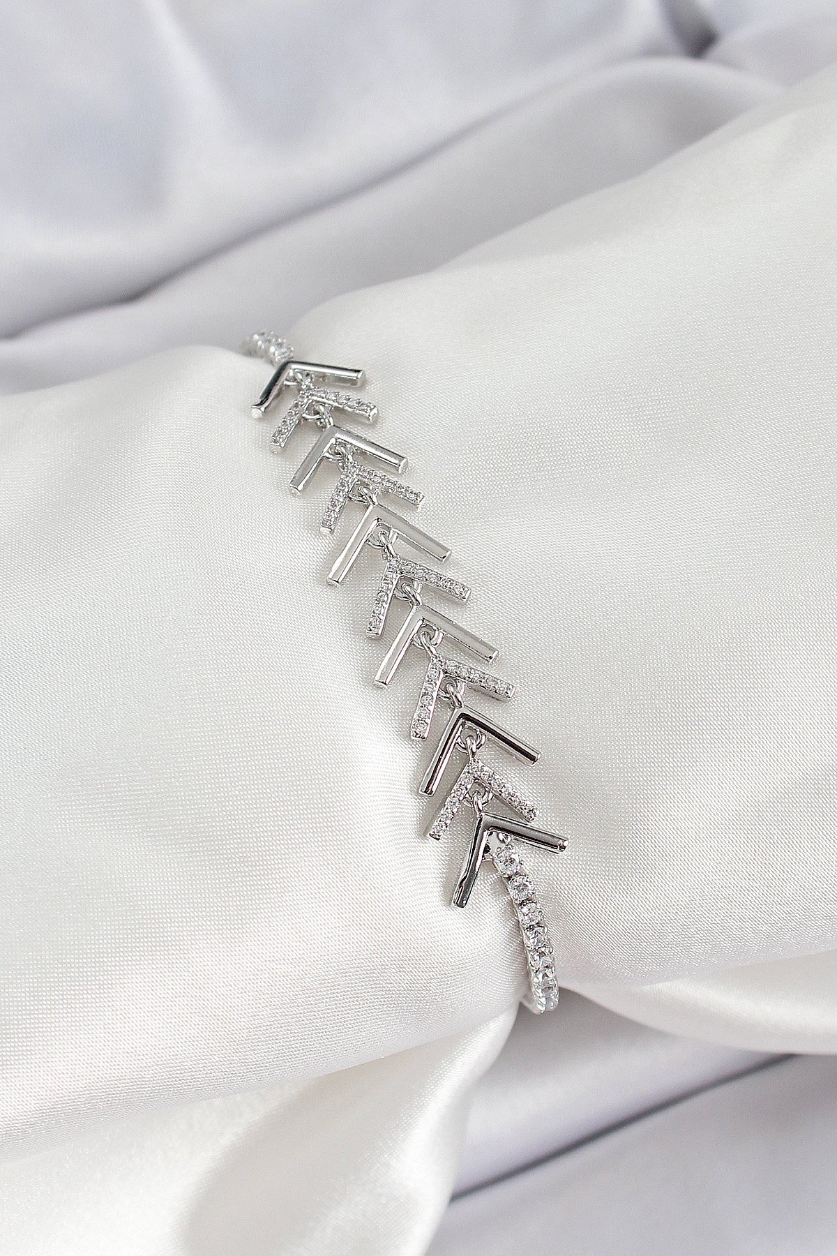 Pirinç Gümüş Renk Zirkon Taşlı Balık Sırtı Kadın Bileklik