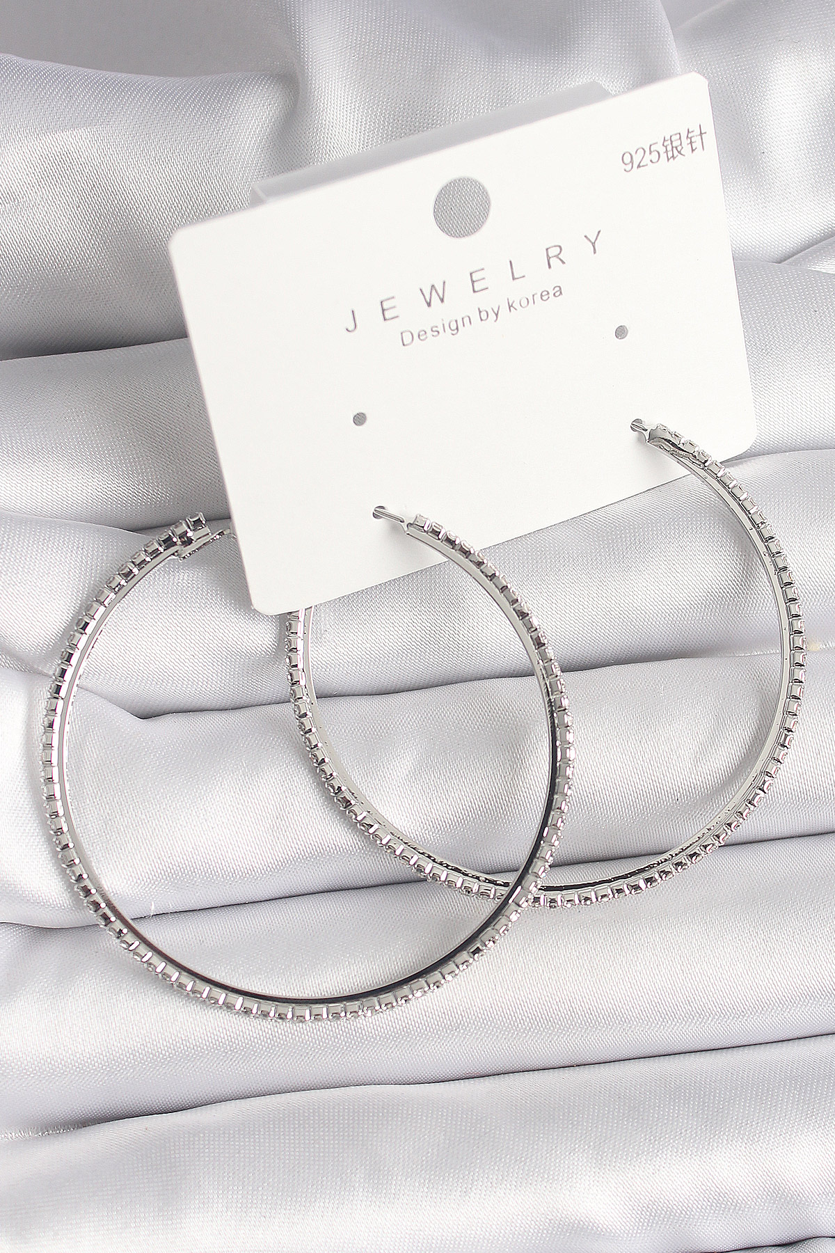 Pirinç Gümüş Renk Zirkon Taşlı Halka Model Kadın Küpe