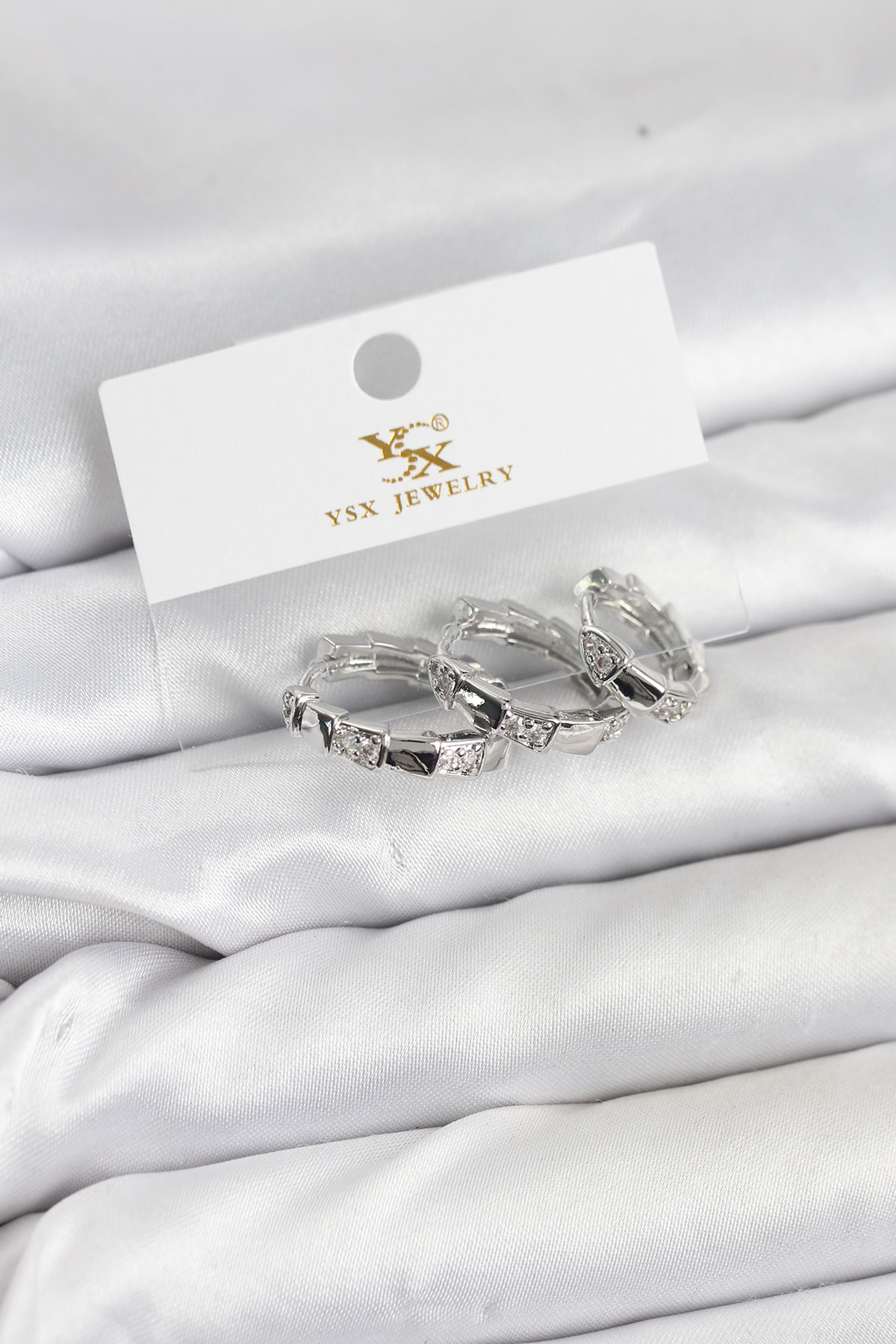 Pirinç Gümüş Renk Zirkon Taşlı Halka Yılan Model YSX Trio Küpe Seti