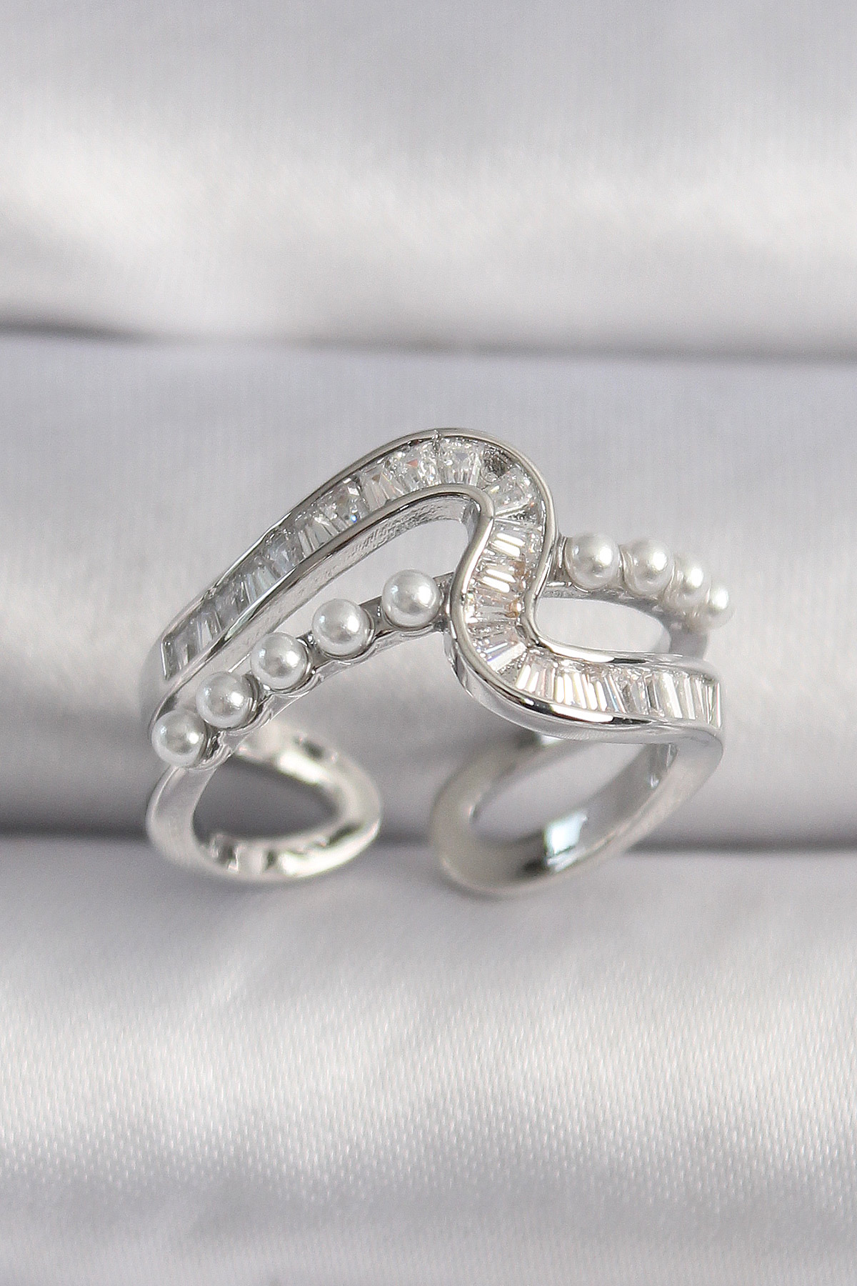 Pirinç Gümüş Renk Zirkon Taşlı İnci Detay VIP Seri Kadın Yüzük