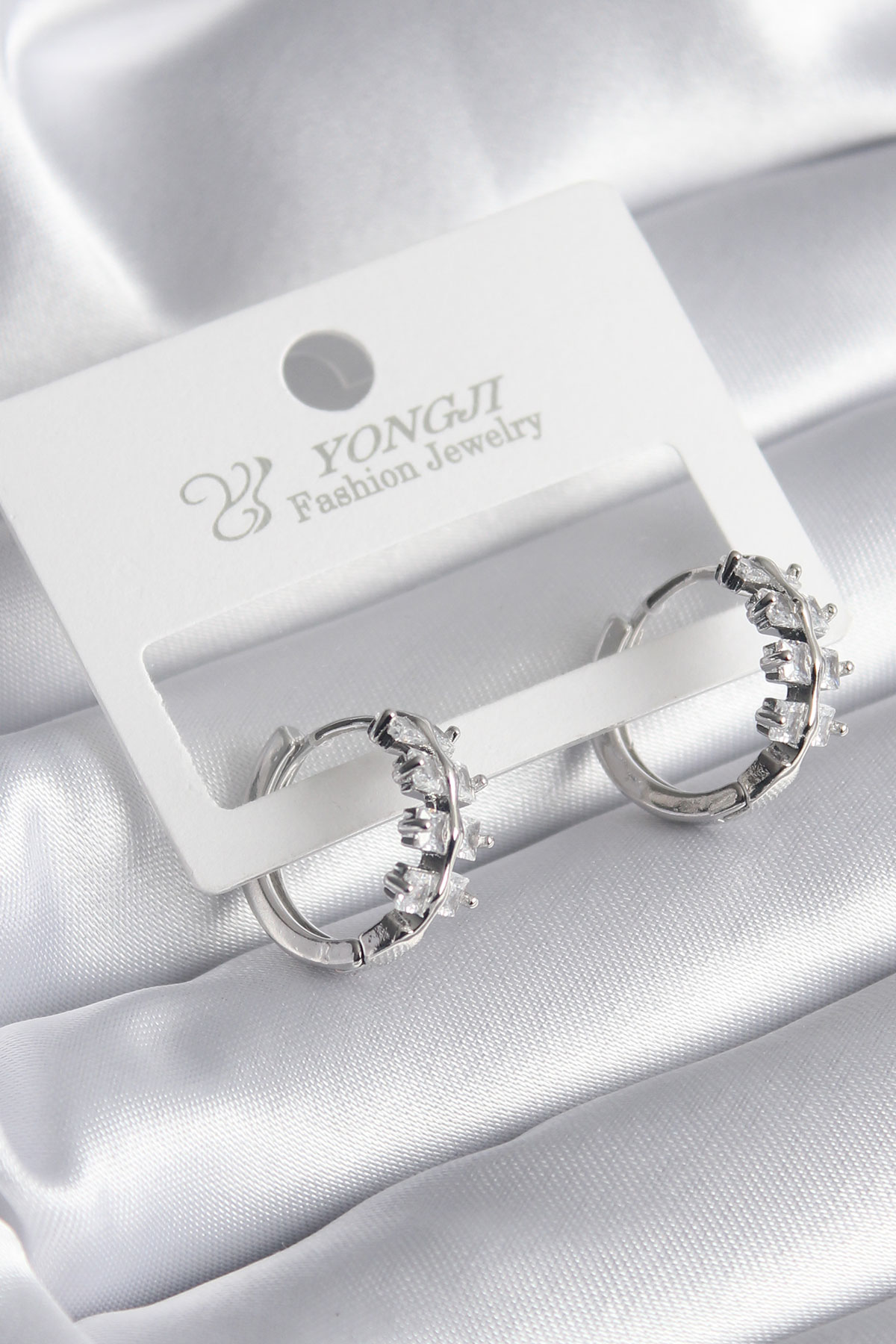 Pirinç Gümüş Renk Zirkon Taşlı Kadın Küpe