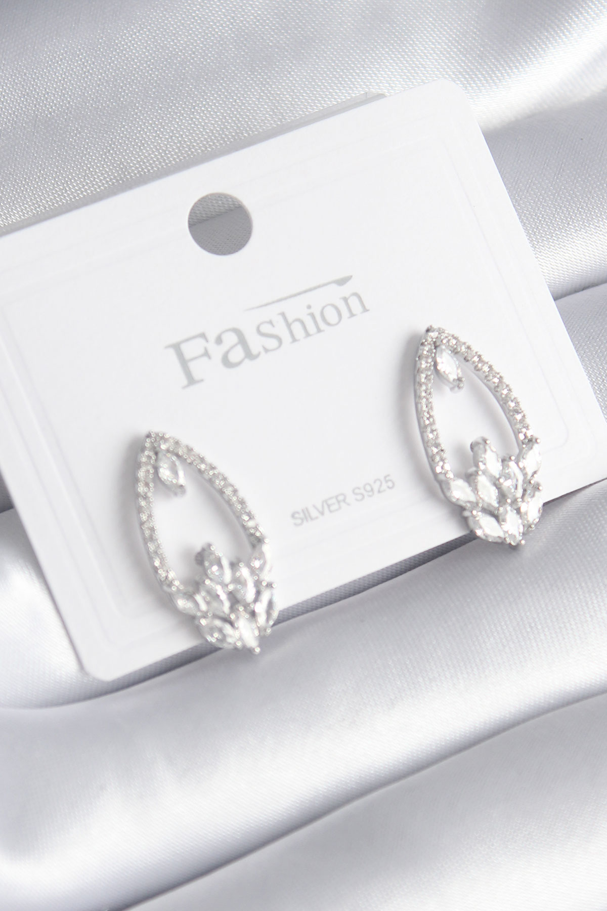 Pirinç Gümüş Renk Zirkon Taşlı Kadın Küpe