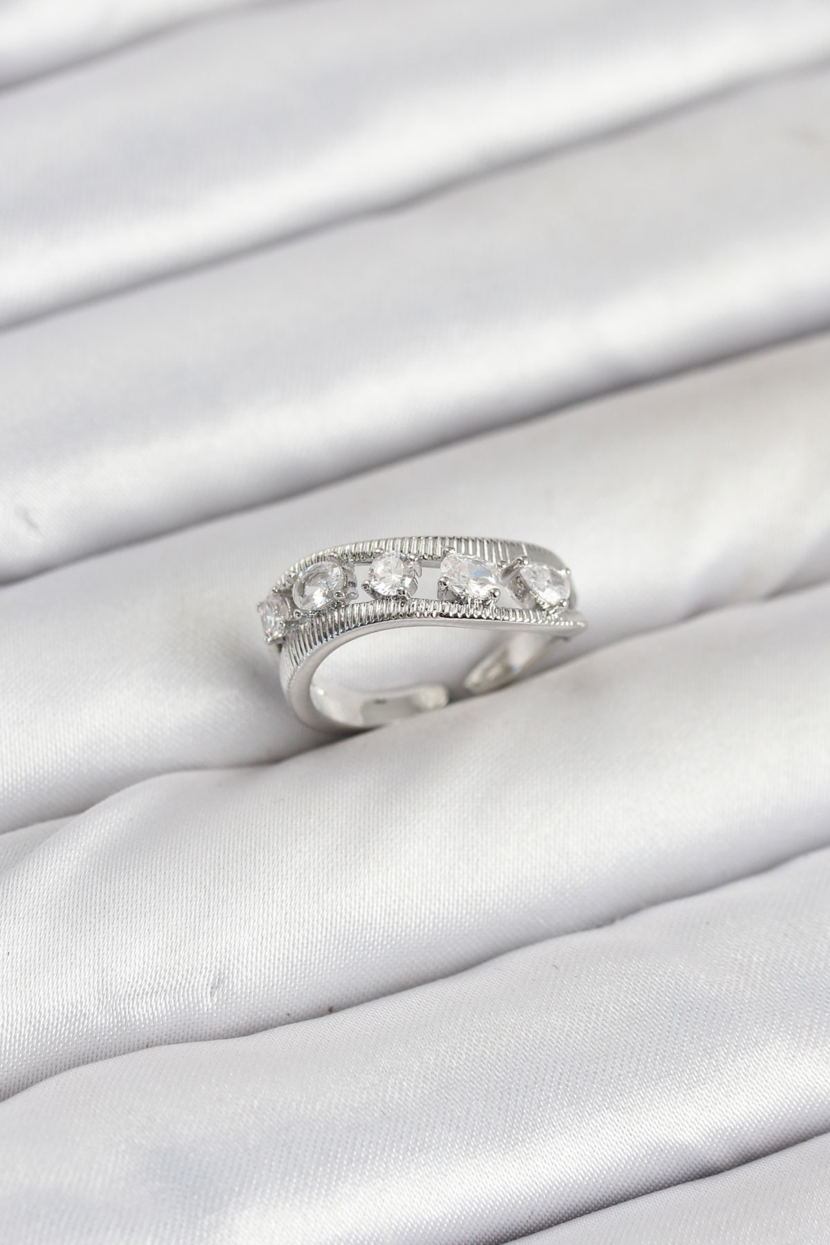 Pirinç Gümüş Renk Zirkon Taşlı Kadın Yüzük