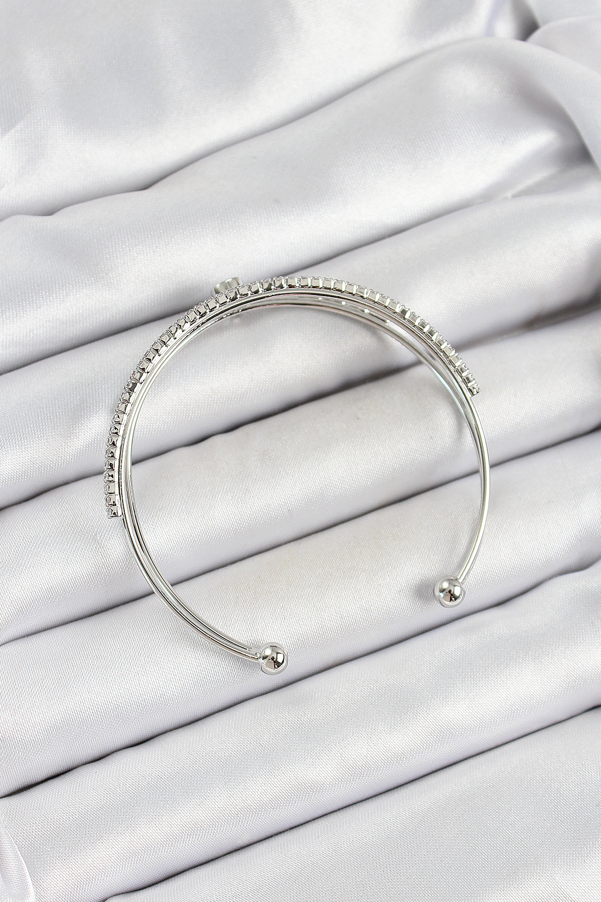 Pirinç Gümüş Renk Zirkon Taşlı Kalp Detaylı Kadın Bileklik