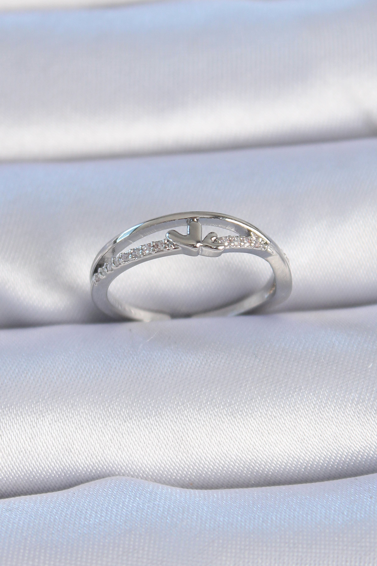 Pirinç Gümüş Renk Zirkon Taşlı Kalp Model Kadın Yüzük