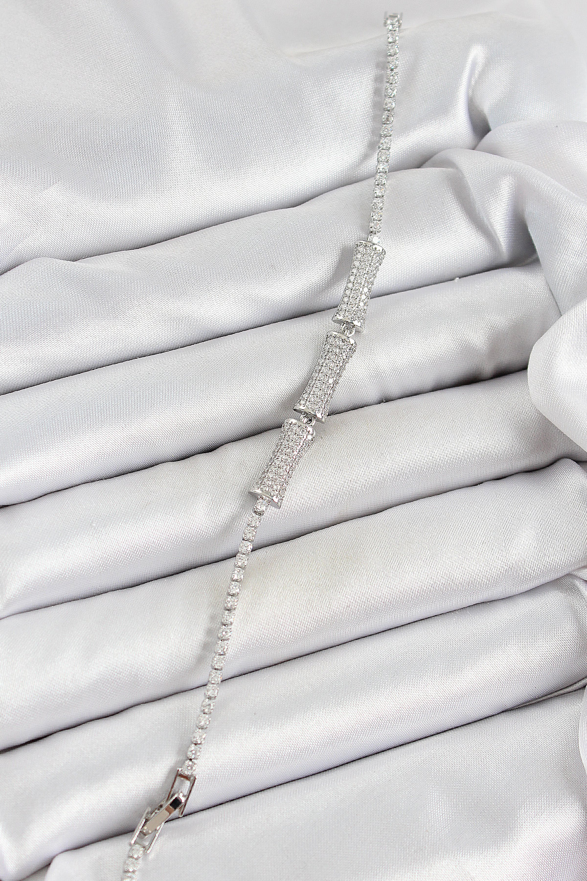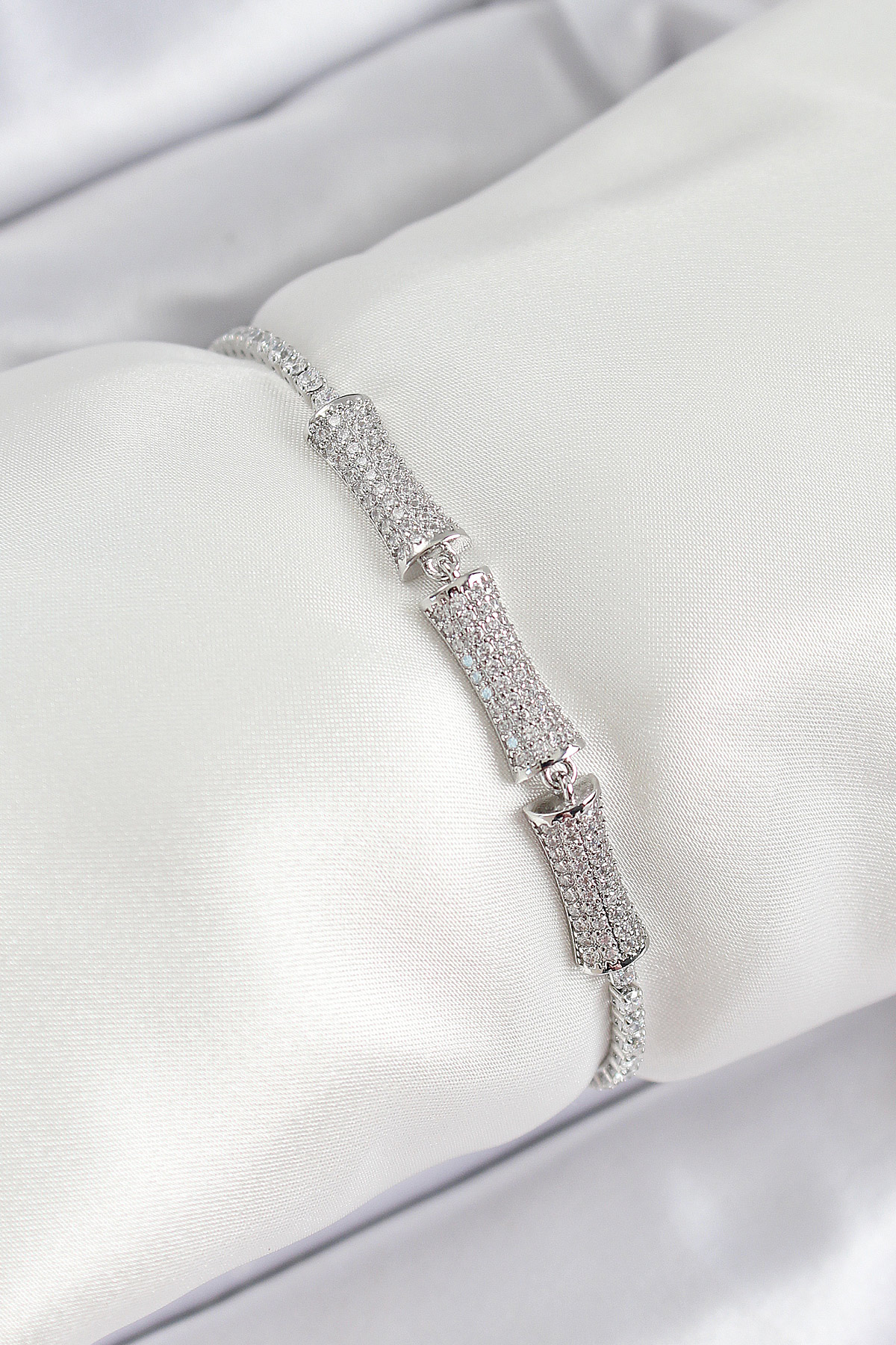 Pirinç Gümüş Renk Zirkon Taşlı Kemik Model Kadın Bileklik