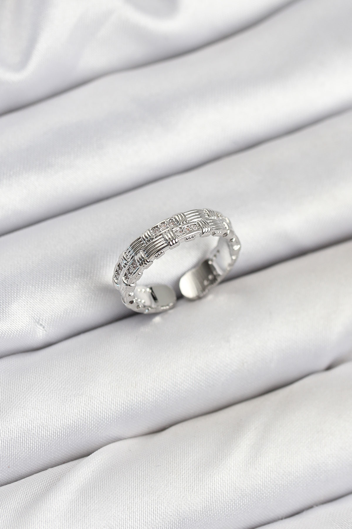 Pirinç Gümüş Renk Zirkon Taşlı Sırım Kadın Yüzük