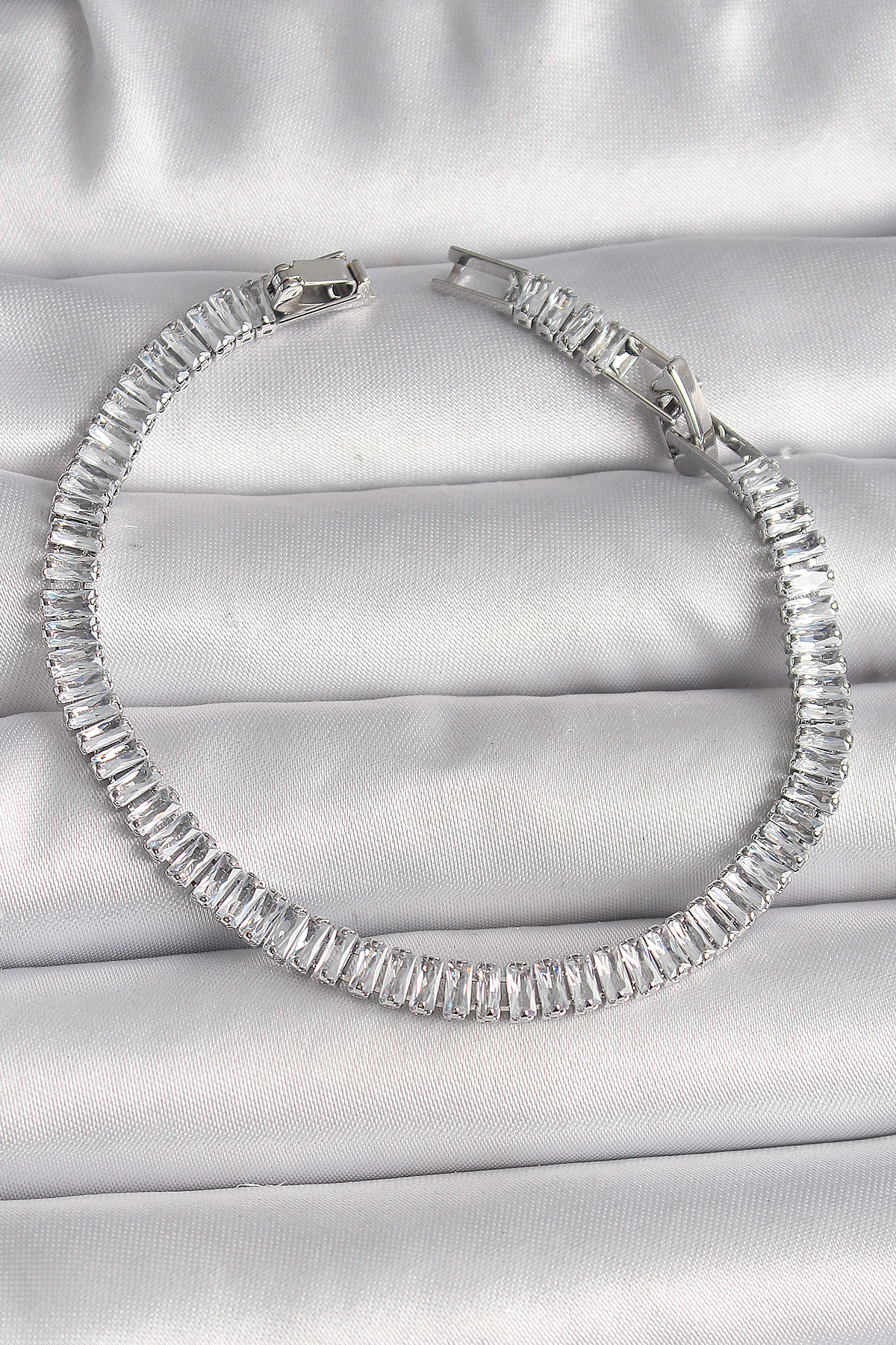 Pirinç Gümüş Renk Zirkon Taşlı Su Yolu Model Kadın Bileklik
