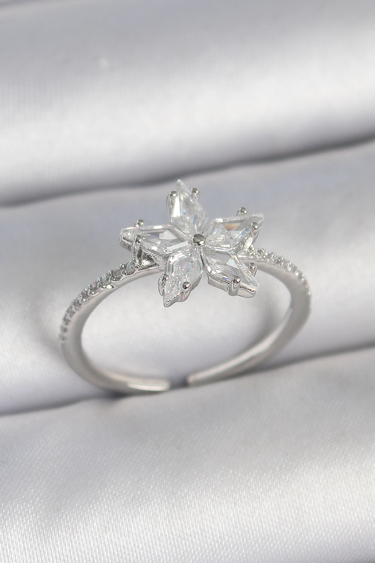 Pirinç Gümüş Renk Zirkon Taşlı Yıldız Model Ayarlanabilir Kadın Yüzük