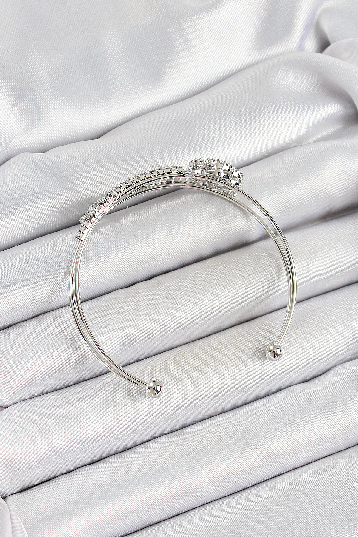Pirinç Gümüş Renk Zirkon Taşlı Yonca Model 2'li Kadın Bileklik