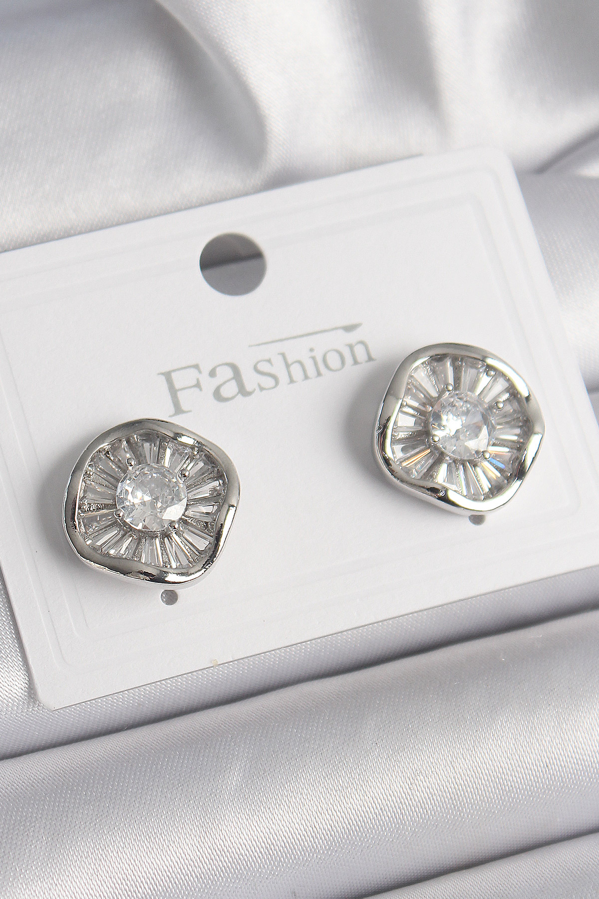 Pirinç Gümüş Renk Zirkon Taşlı Yonca Model Kadın Küpe