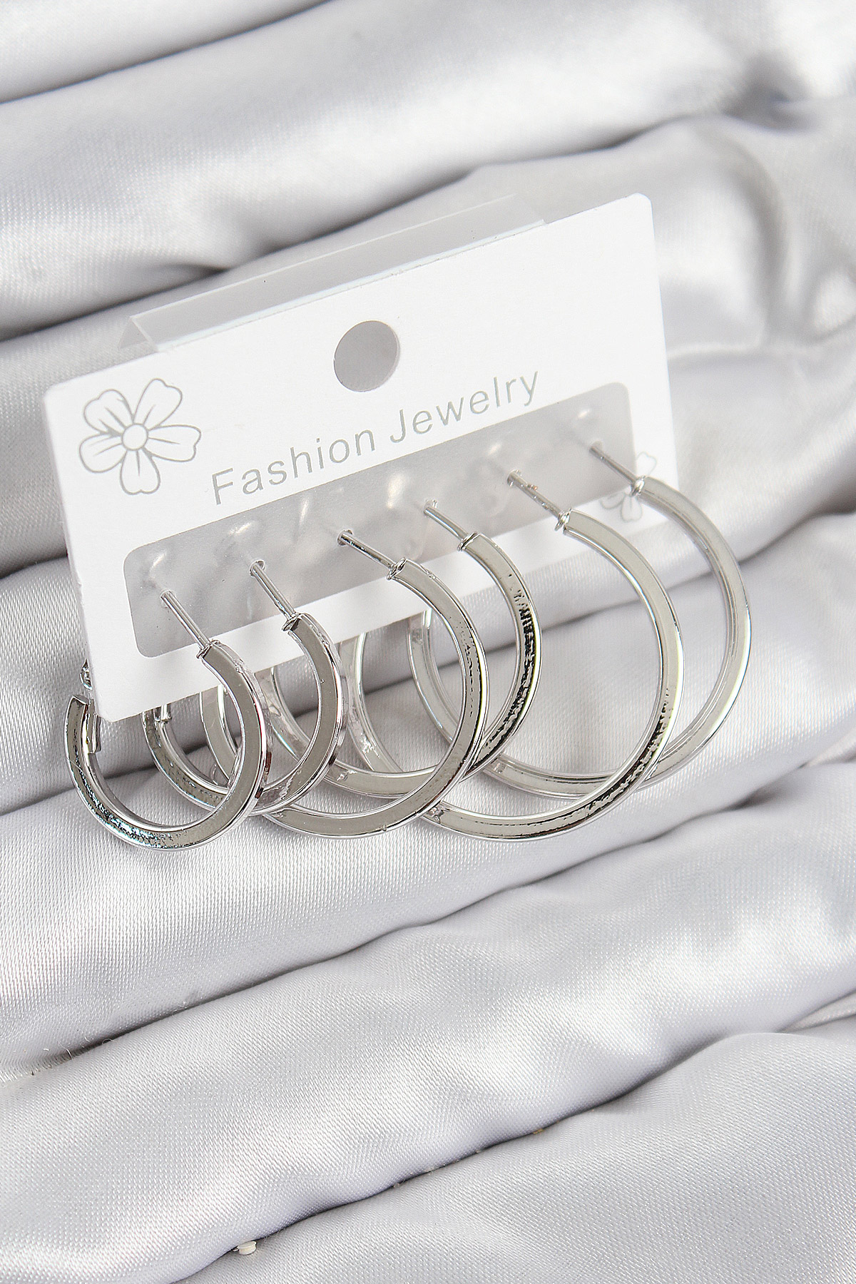 Pirinç Halka Model Gümüş Renk Kadın Set Küpe