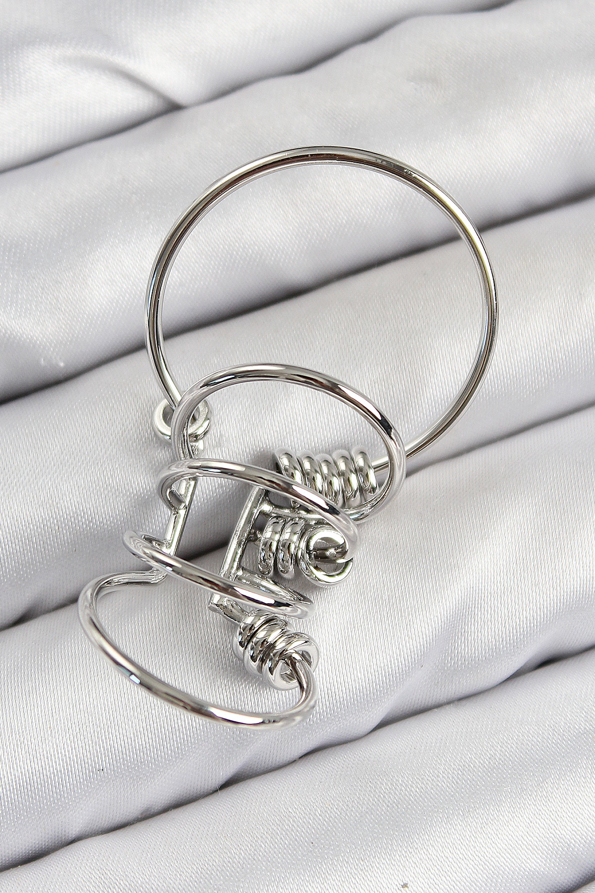 Pirinç Halkalı Model Gümüş Renk Kıkırdak Küpe