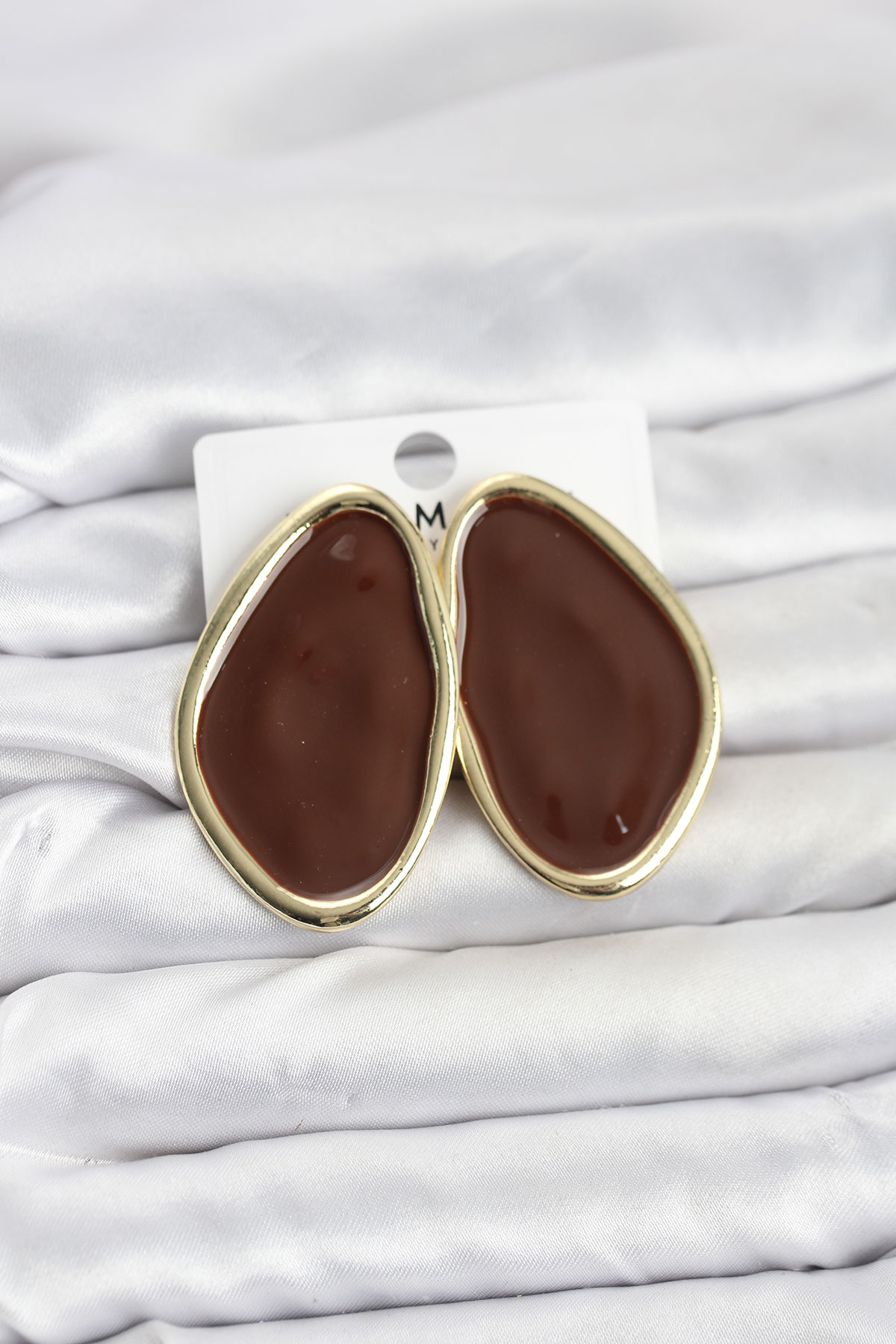 Pirinç Kahverengi Mineli Damla Model Vintage Plaka Kadın Küpe