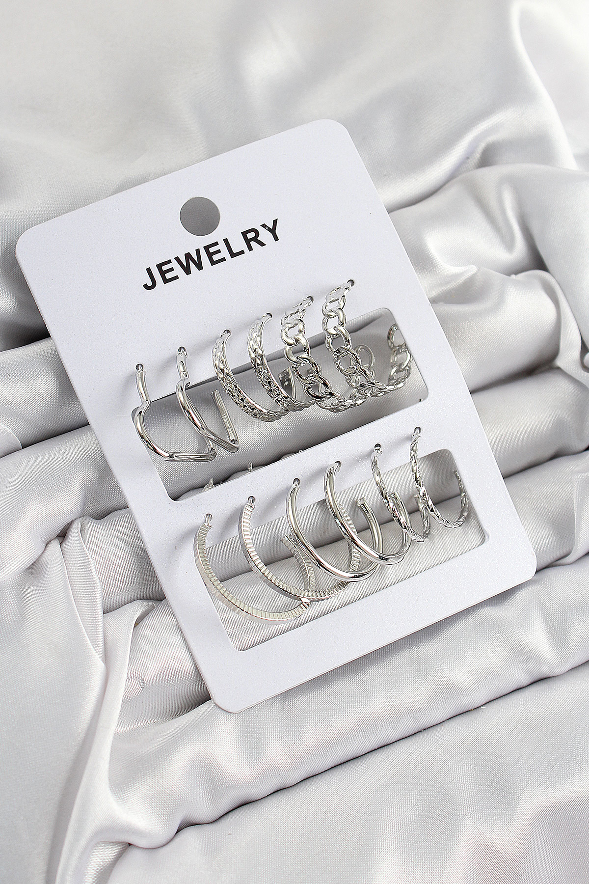 Pirinç Karışık Halka Model Gümüş Renk 6 Çift Kadın Küpe Set