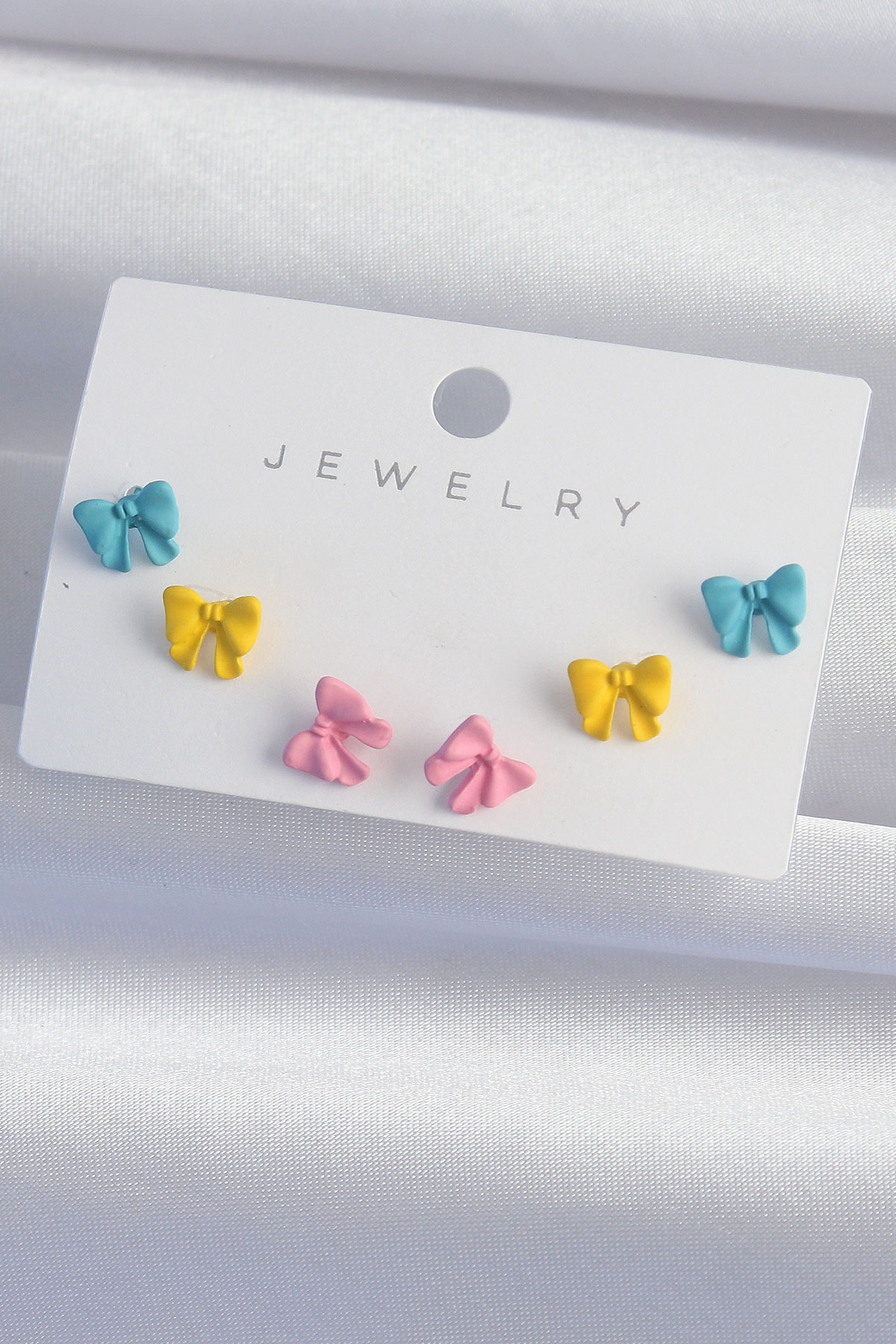 Pirinç Rengarenk Mineli Minimal Fiyonk Küpe Seti