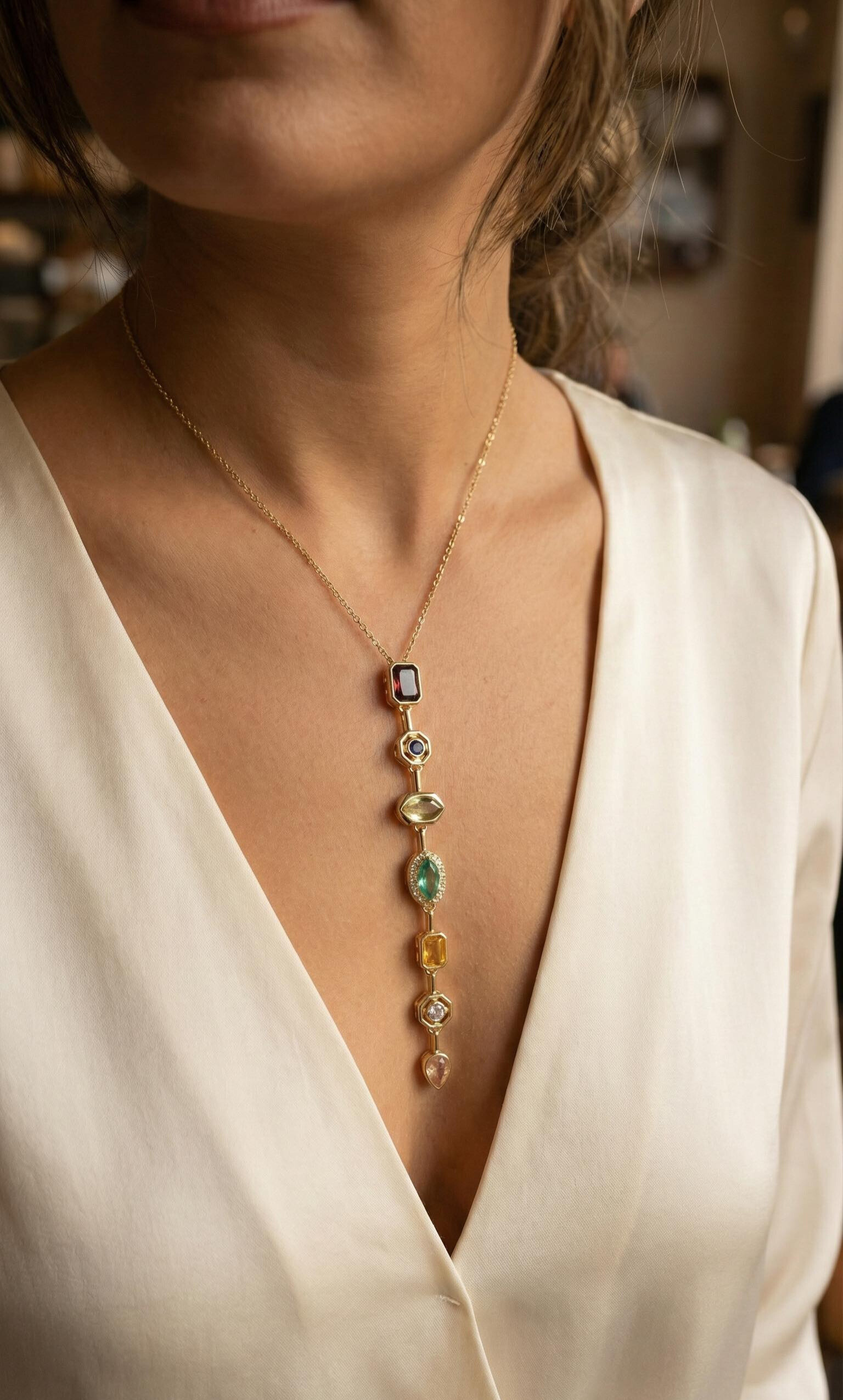Pirinç Renkli Zirkon Taşlı Model Gold Renk 7 Element Kadın Y Kolye