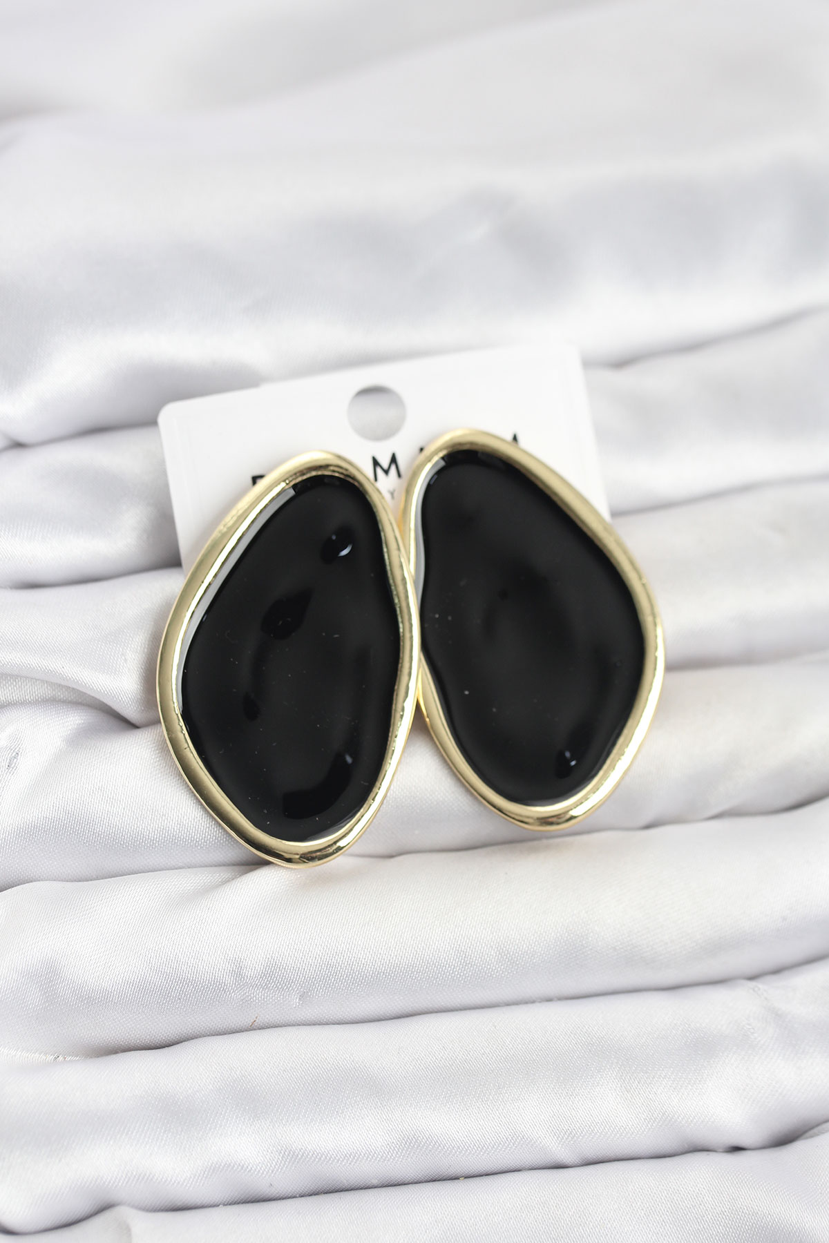 Pirinç Siyah Mineli Damla Model Vintage Plaka Kadın Küpe