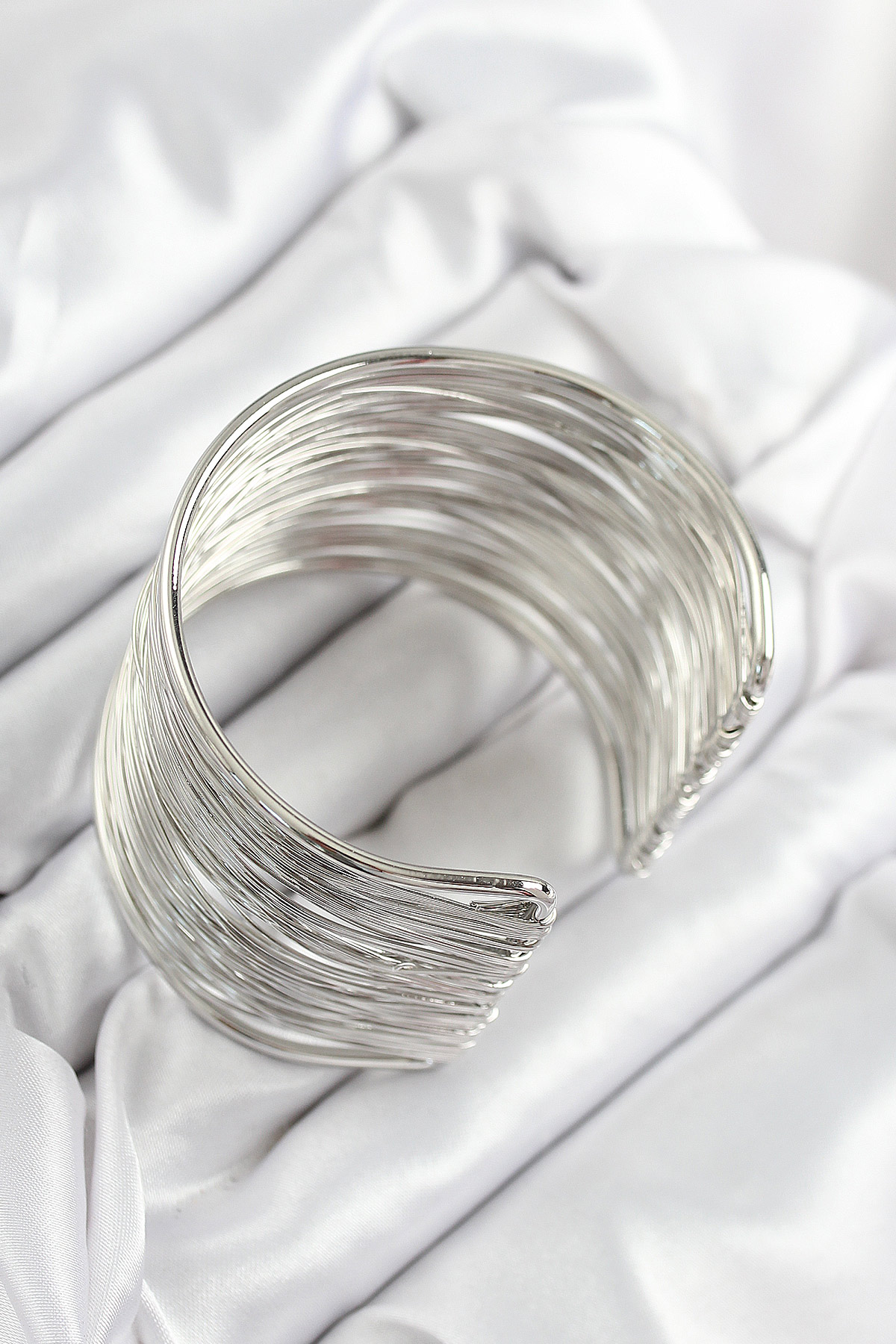 Pirinç Tel Sarma Model Gümüş Renk Kadın Bileklilk