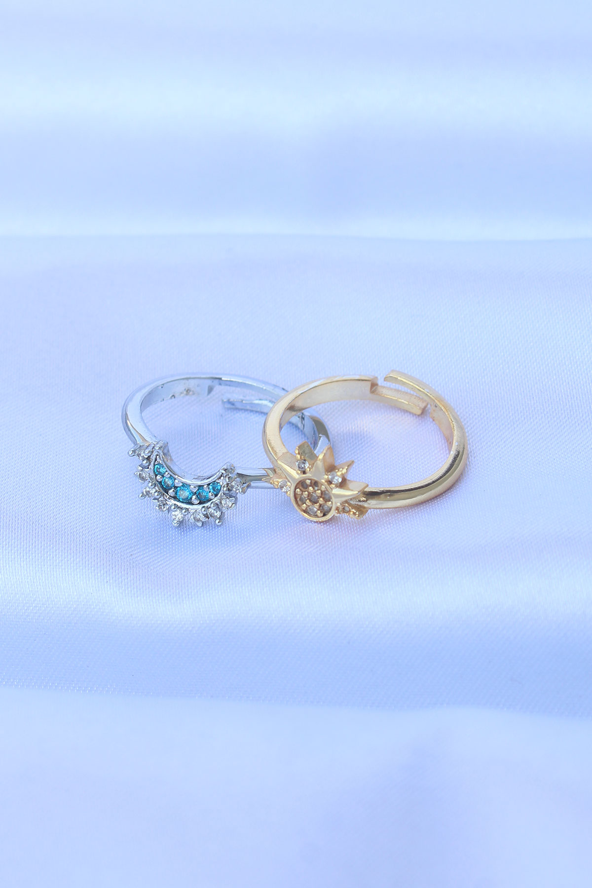 Pirinç Zirkon Taşlı 2li Ayarlanabilir Arkadaş Yüzüğü