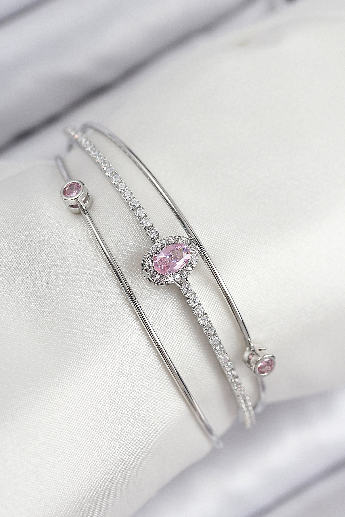 Pirinç Zirkon Taşlı Baget Model Gümüş Renk Kadın Bileklik