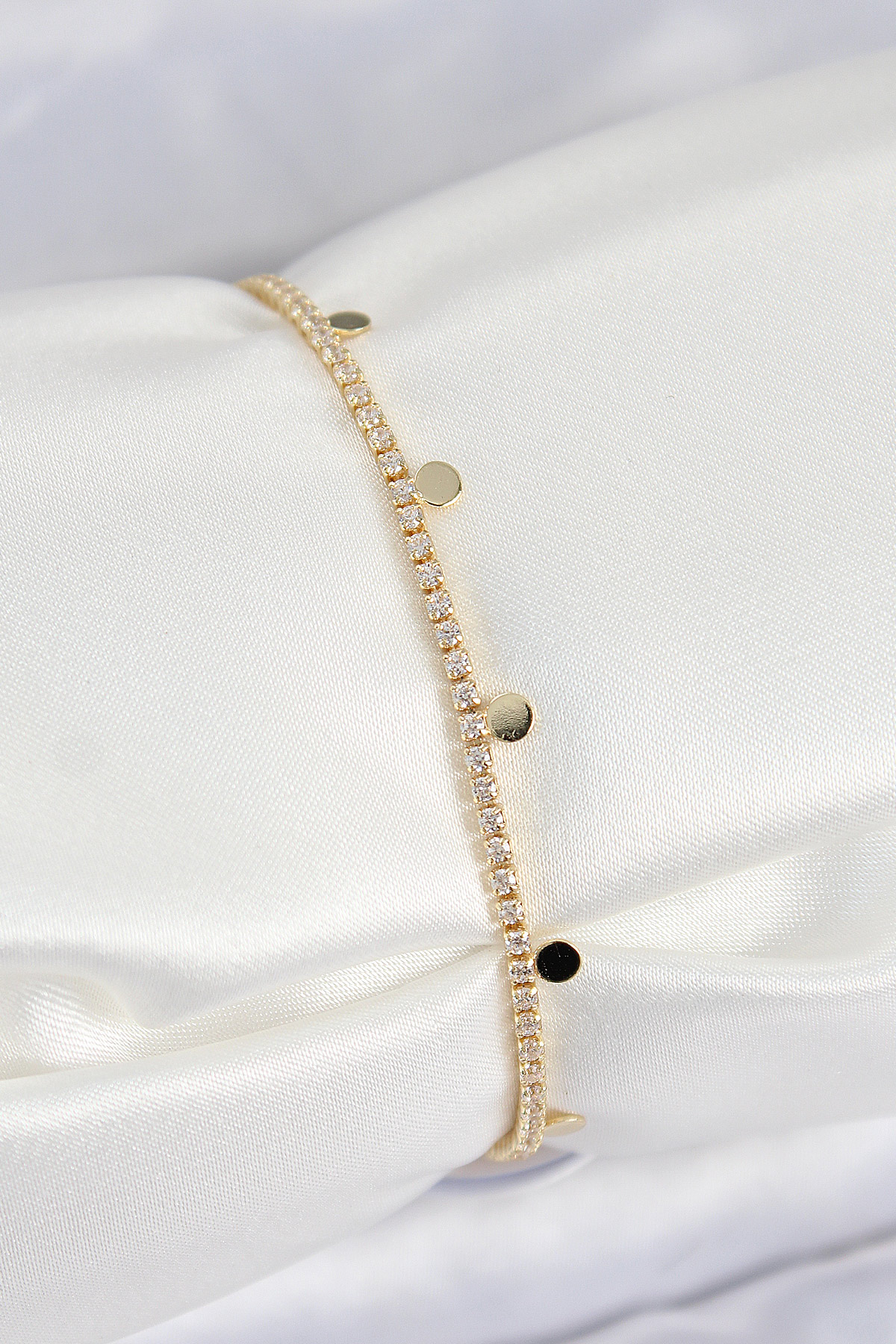 Pirinç Zirkon Taşlı Ezme Zincirli Sıralı Model Gold Renk Kadın Bilekilk