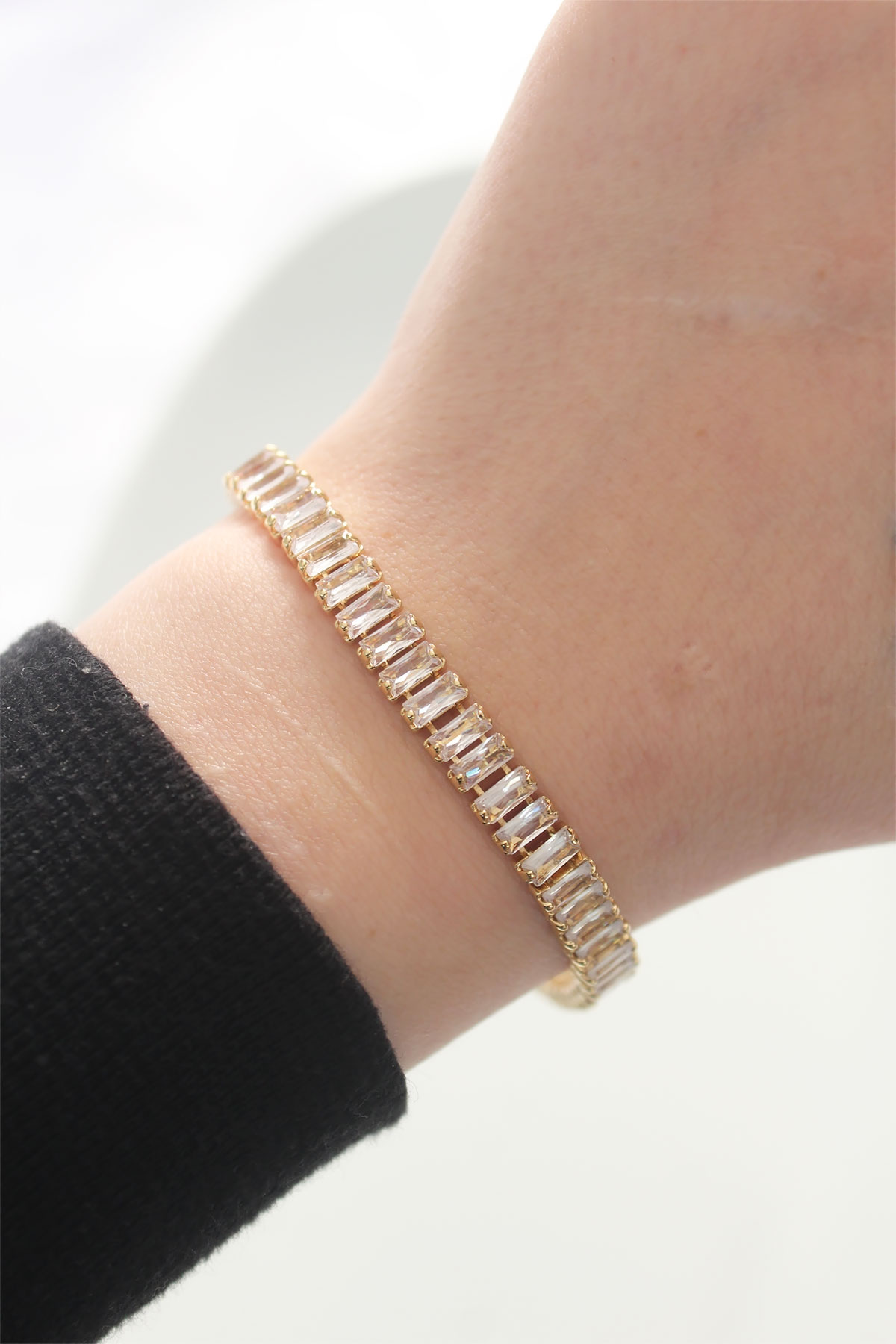 Pirinç Zirkon Taşlı Gold Renk Su Yolu Bileklik