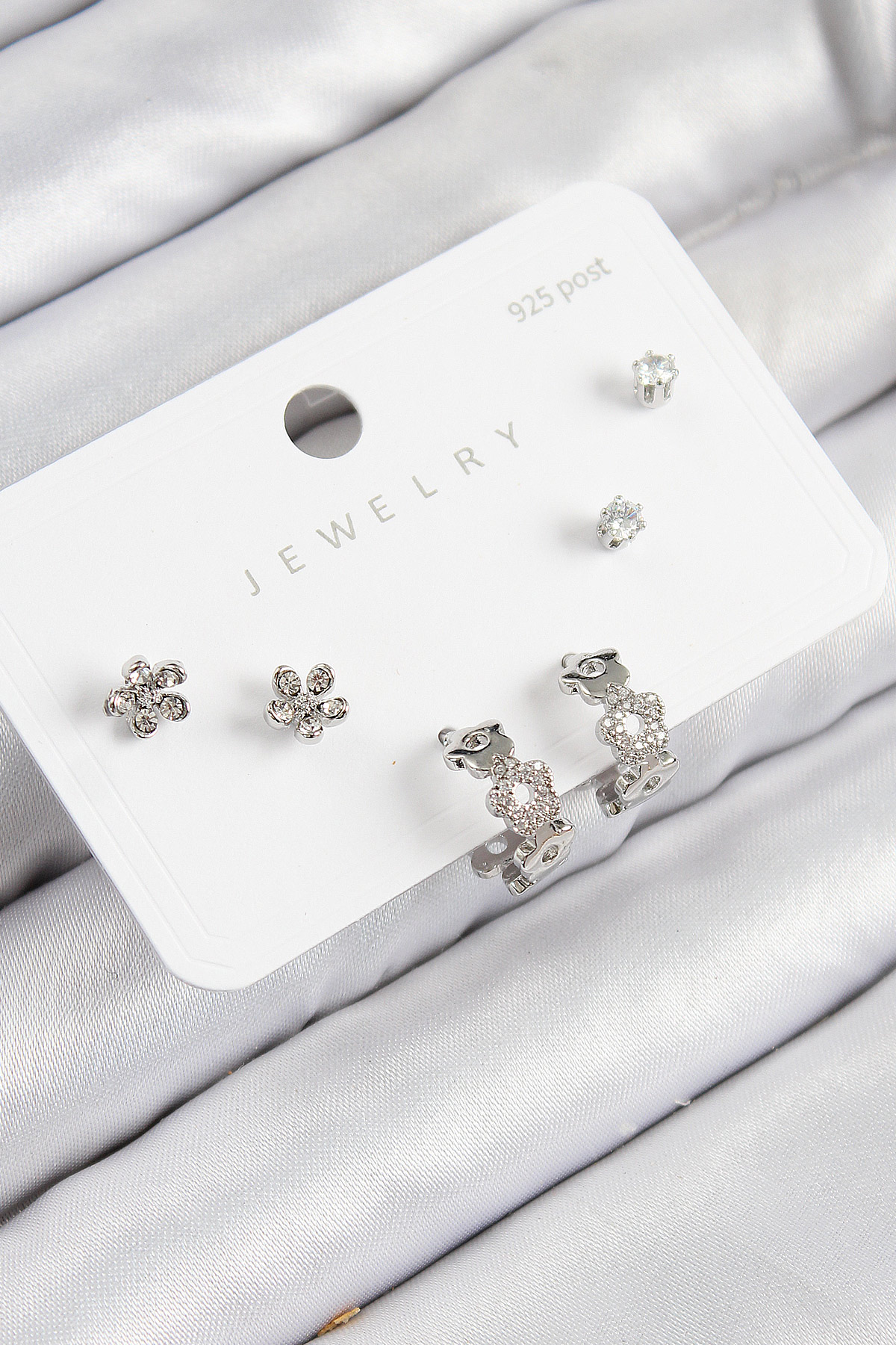 Pirinç Zirkon Taşlı Halka Model Gümüş Renk 925 Ayar Gümüş Çivi Kadın Küpe Set