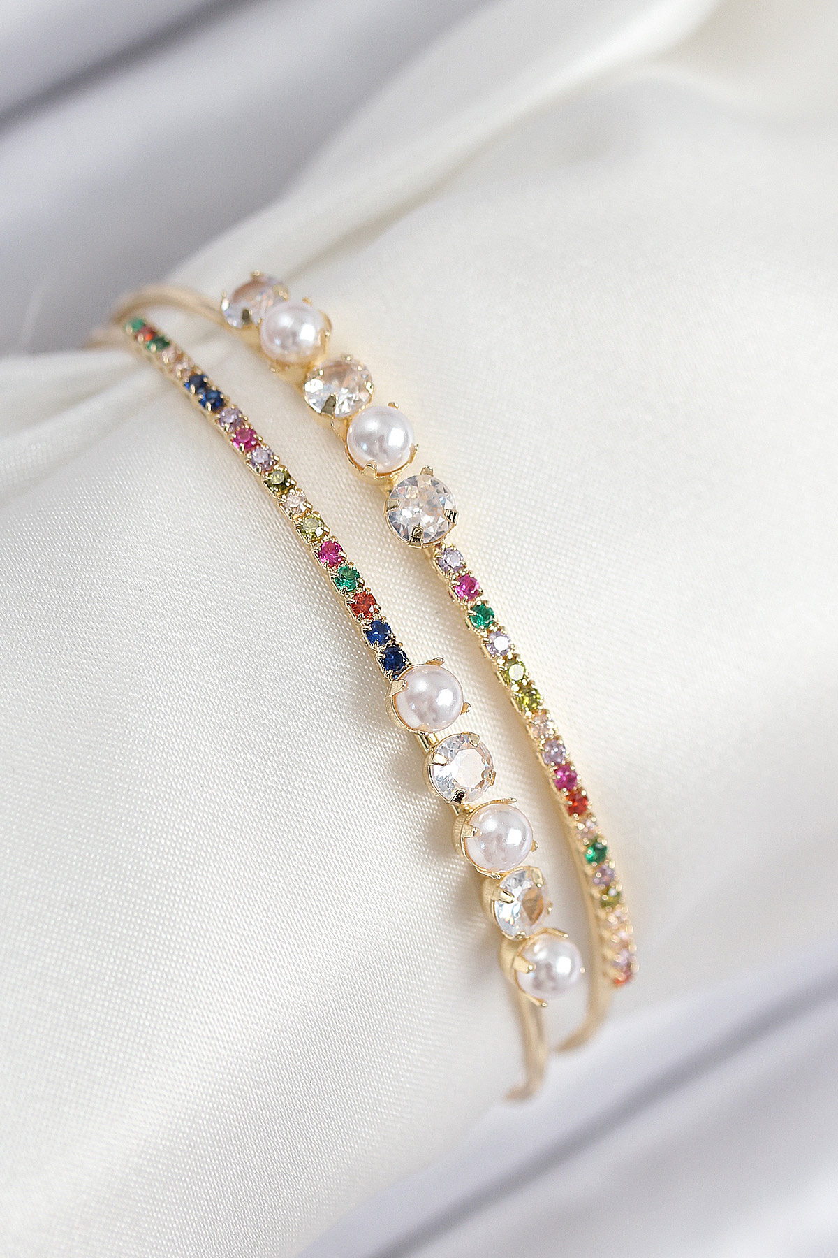 Pirinç Zirkon Taşlı İnci Model Gold Renk Kadın Bileklik