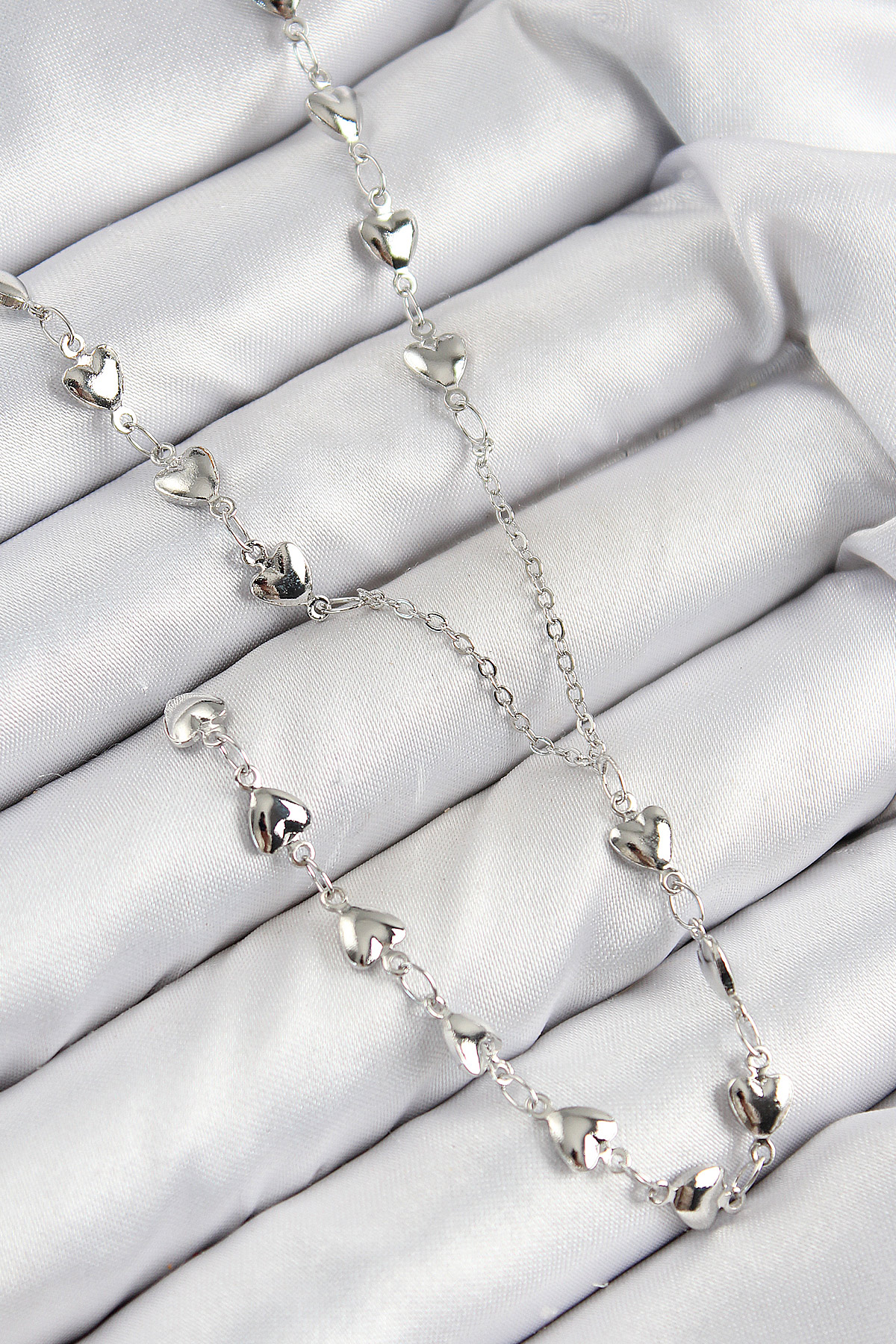 Pirinç Zirkon Taşlı Kalp Model Gümüş Renk Y Kolye