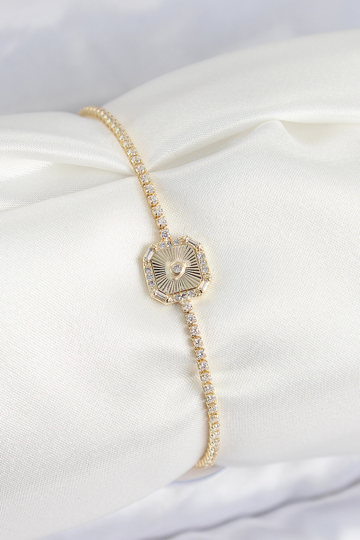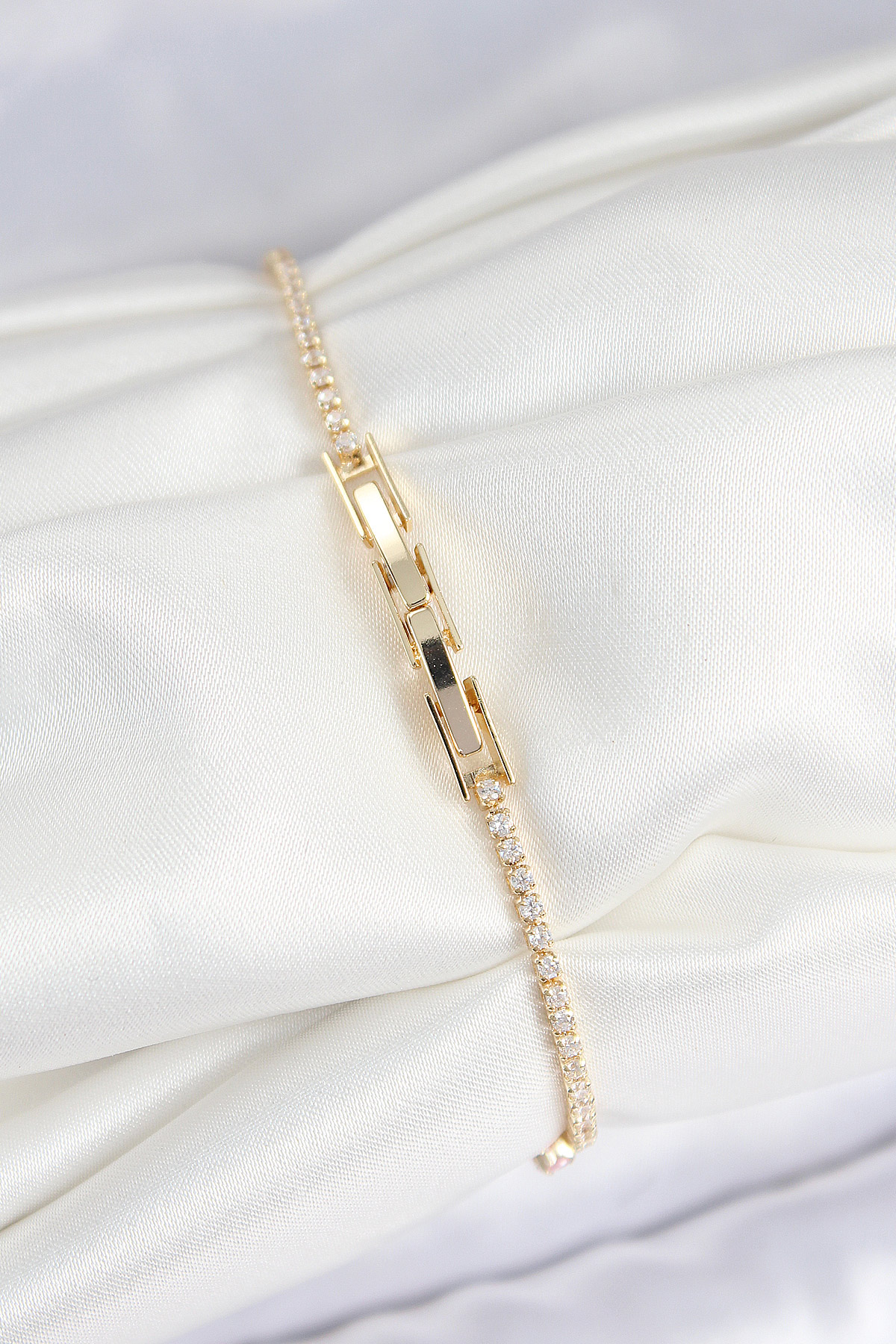 Pirinç Zirkon Taşlı Kare Model Gold Renk Kadın Bilekilk