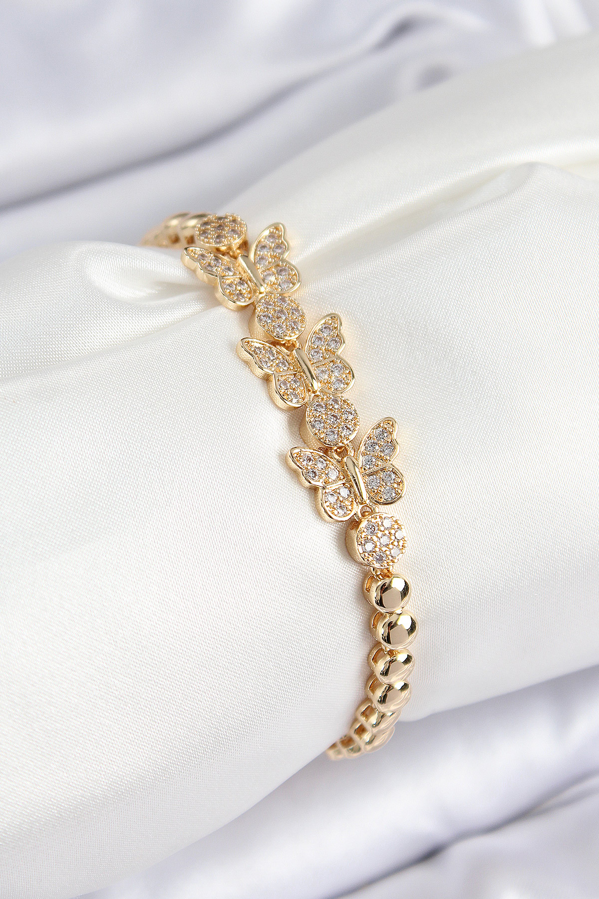 Pirinç Zirkon Taşlı Kelebek Model Gold Renk Kadın Bileklik
