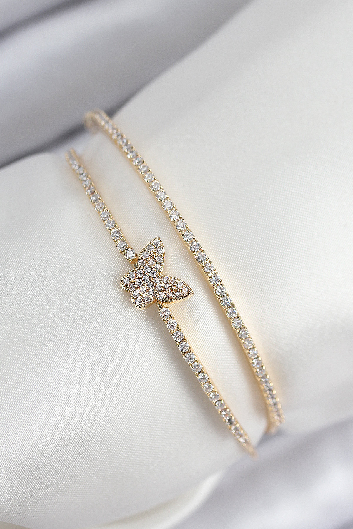 Pirinç Zirkon Taşlı Kelebek Model Gold Renk Kadın Bileklik