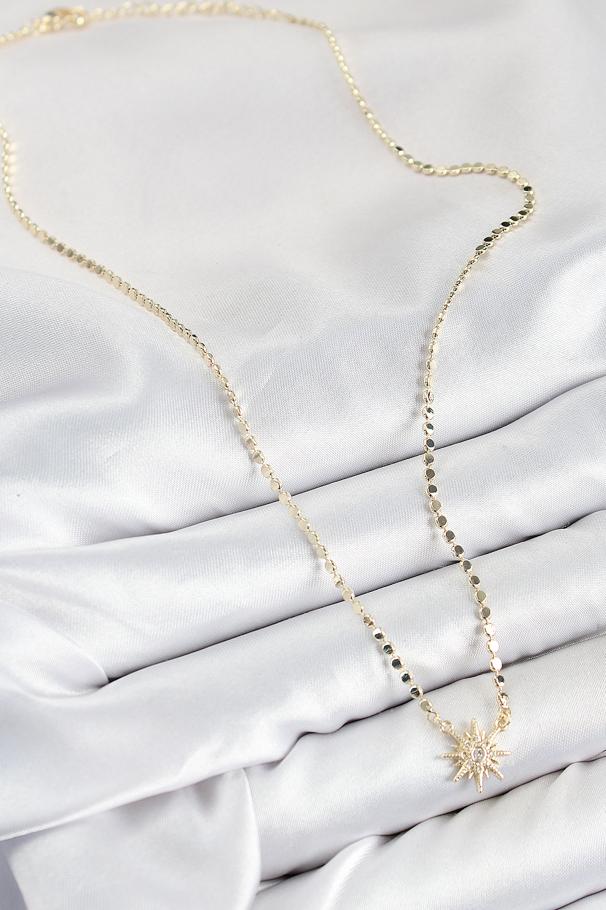 Pirinç Zirkon Taşlı Kutup Yıldızı Model Ezme Zincir Gold Renk Kadın Kolye