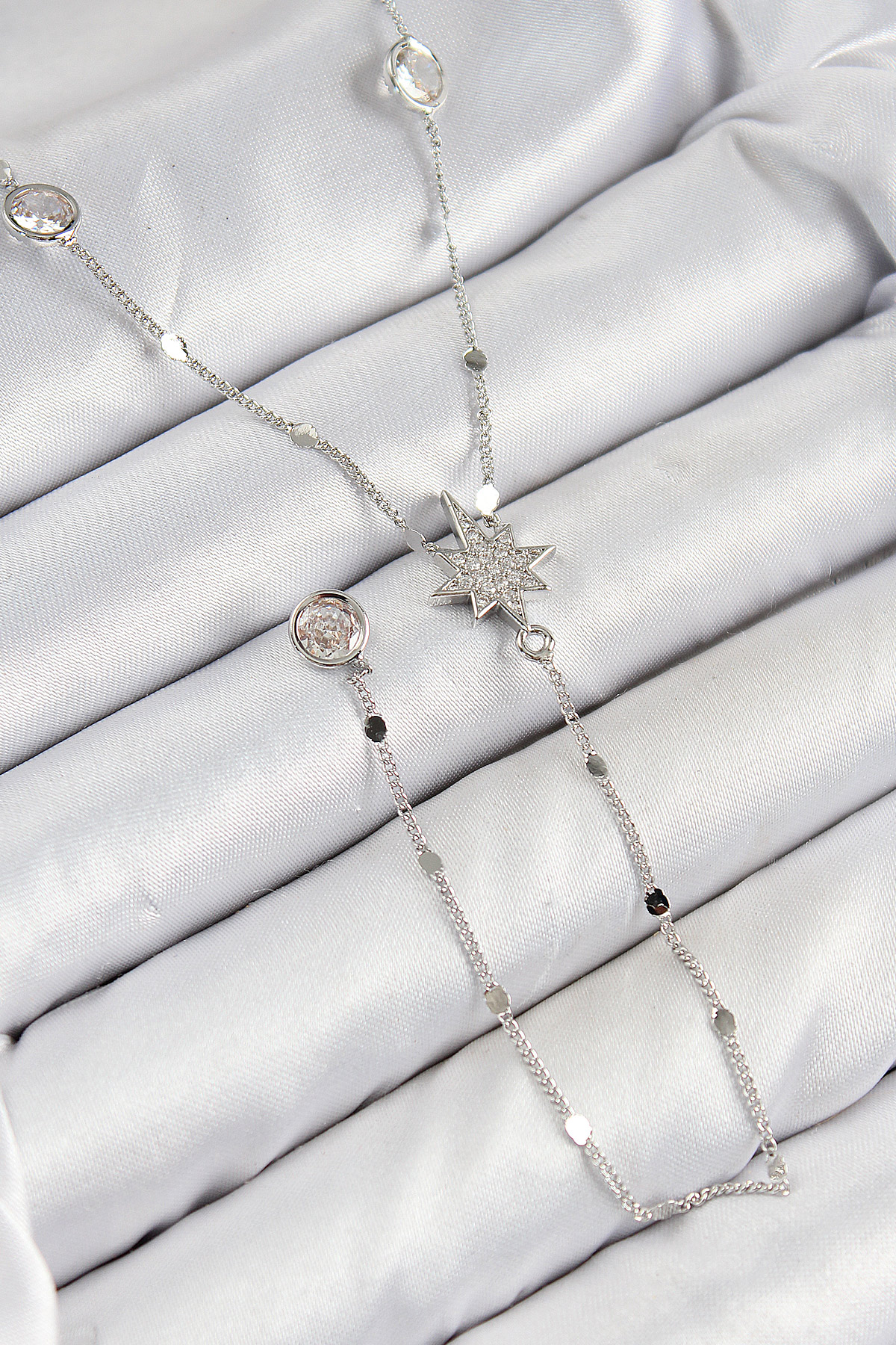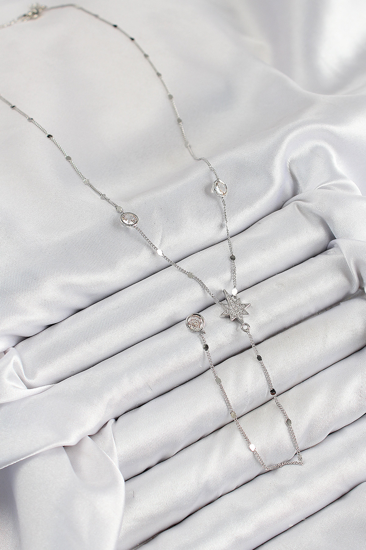 Pirinç Zirkon Taşlı Kutup Yıldızı Model Gümüş Renk Y Kolye