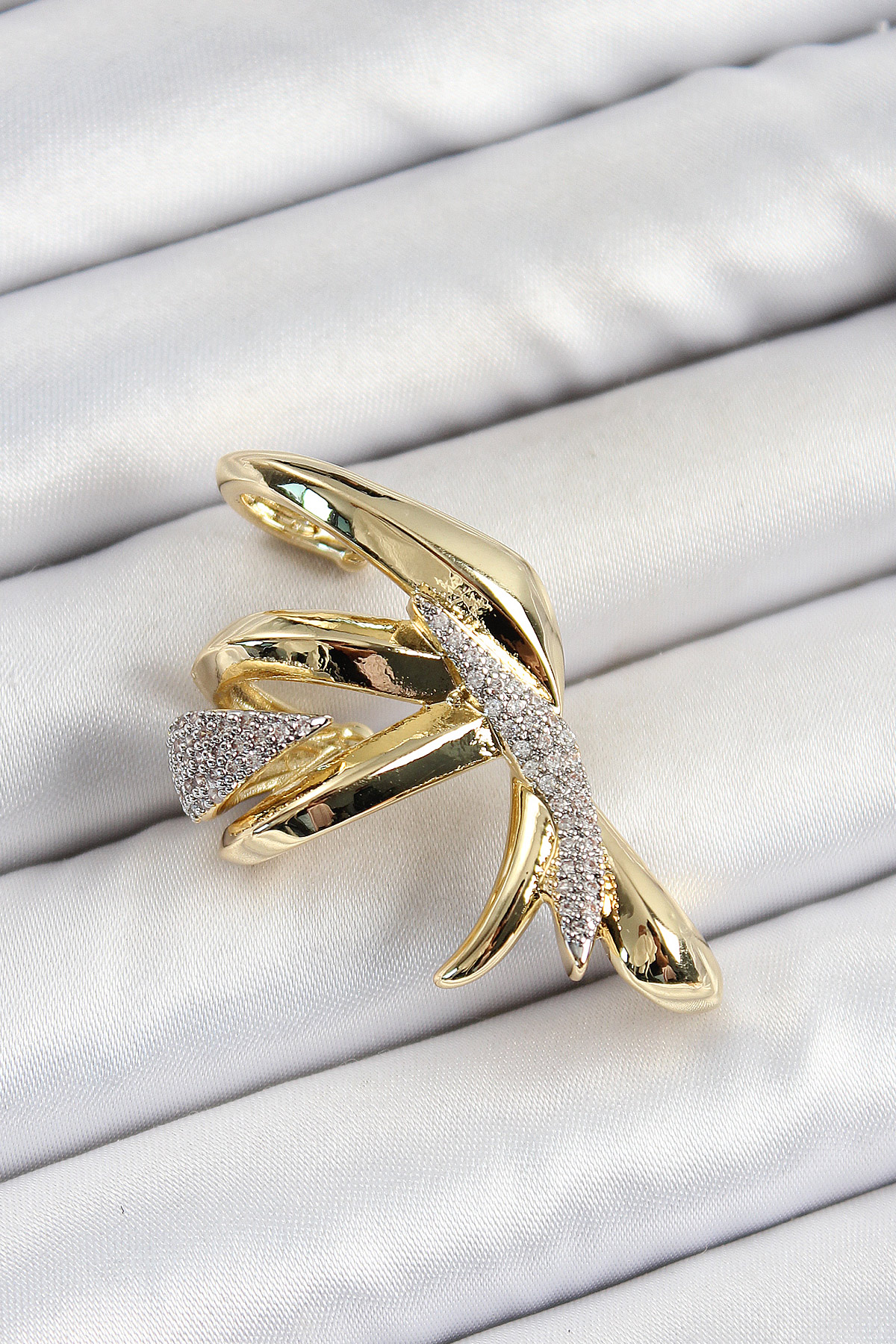 Pirinç Zirkon Taşlı Sıkıştırma Sağ Kıkırdak Gold Renk Kadın Küpe