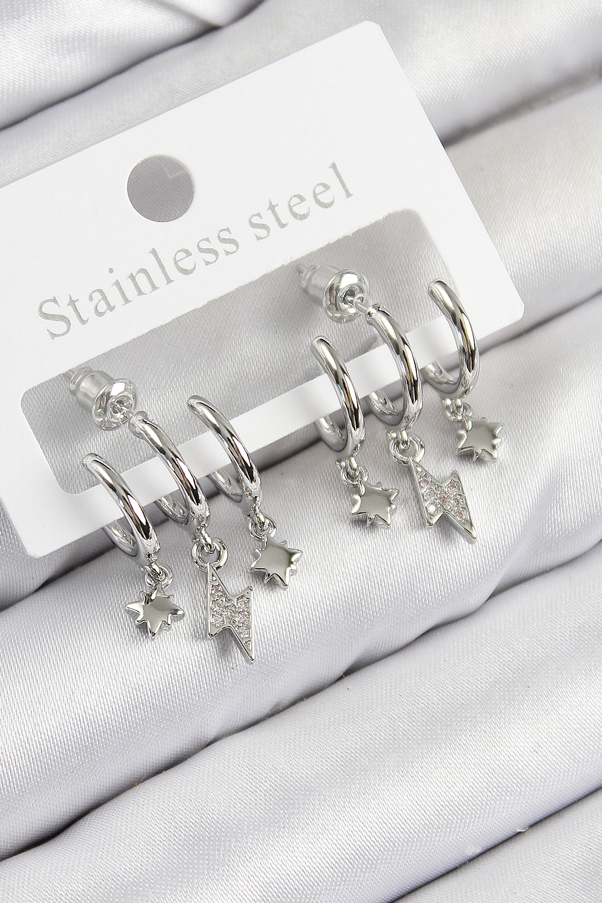 Pirinç Zirkon Taşlı Şimşek Model Gümüş Renk Kadın Küpe