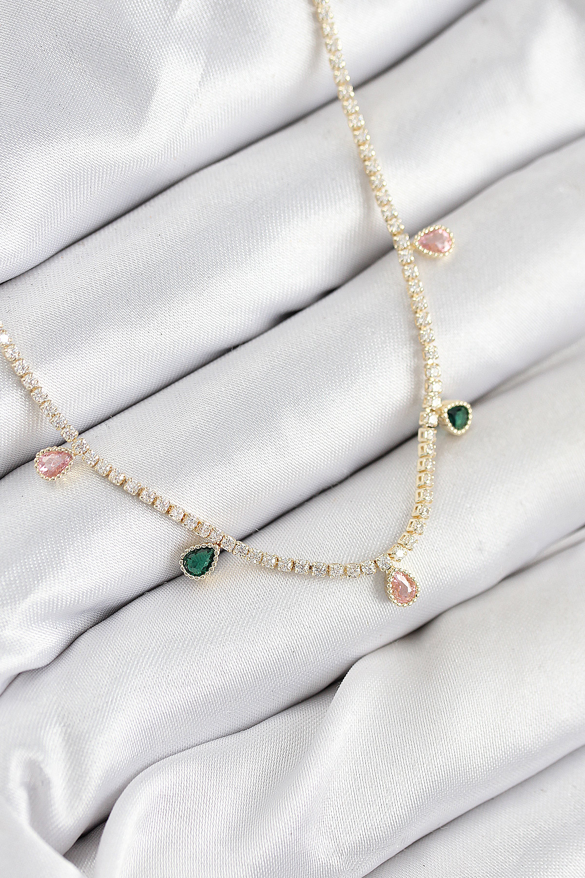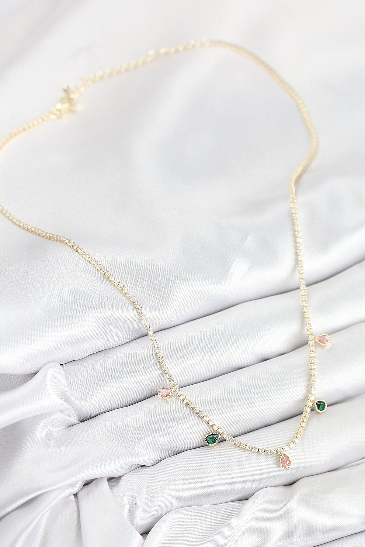 Pirinç Zirkon Taşlı Su Yolu Damla Model Gold Renk Kadın Kolye