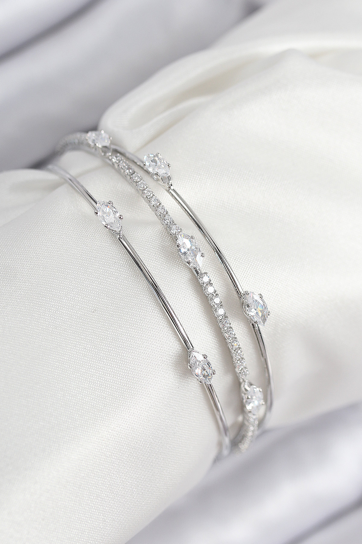Pirinç Zirkon Taşlı Su Yolu Model Gümüş Renk Kadın Bileklik
