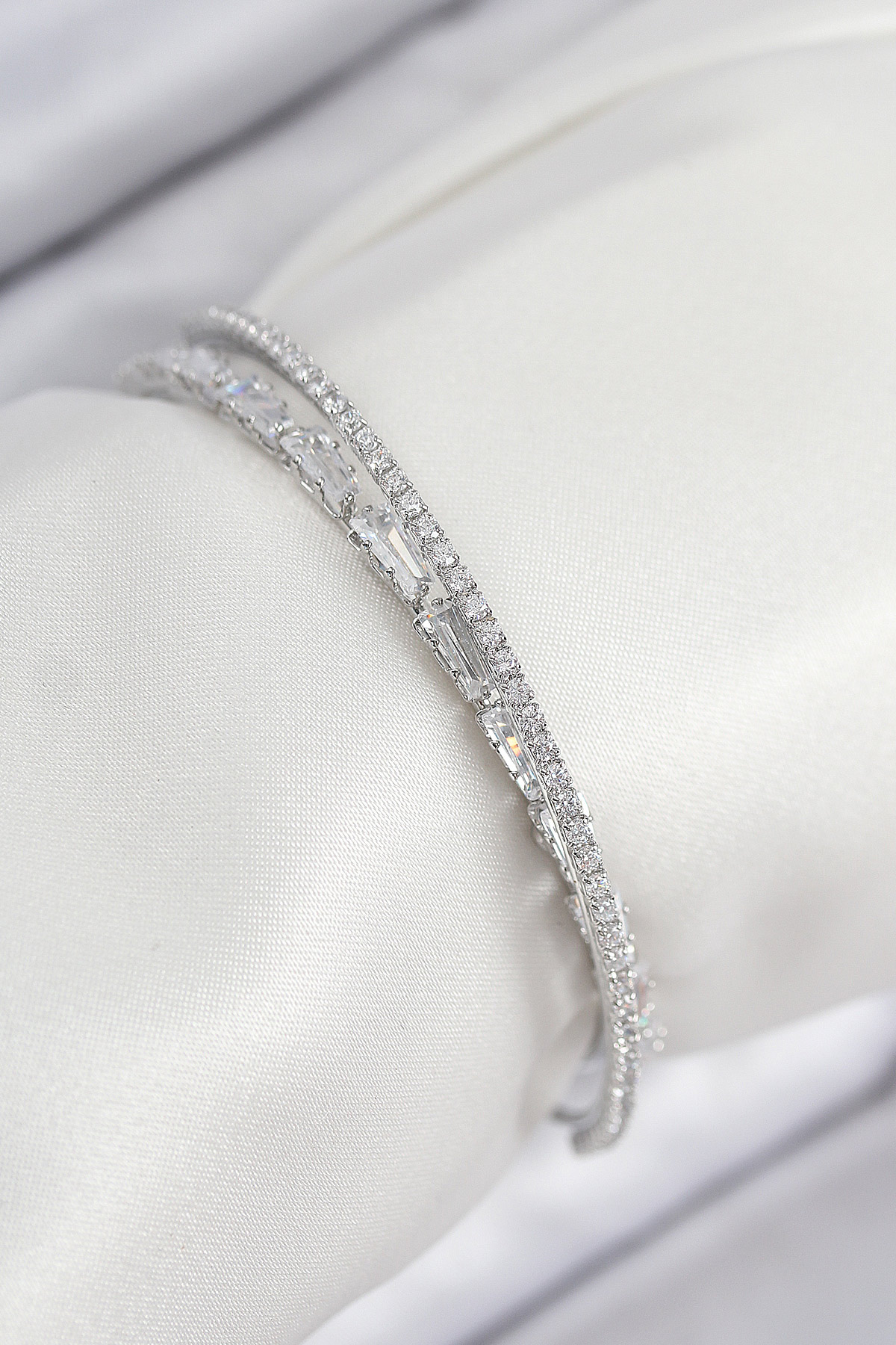 Pirinç Zirkon Taşlı Su Yolu Model Gümüş Renk Kadın Bileklik