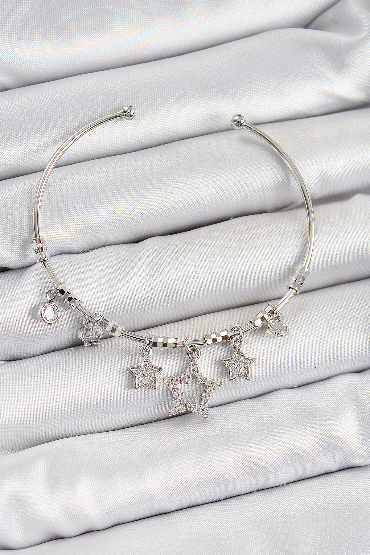 Pirinç Zirkon Taşlı Yıldız Model Gümüş Renk Charm Bileklik