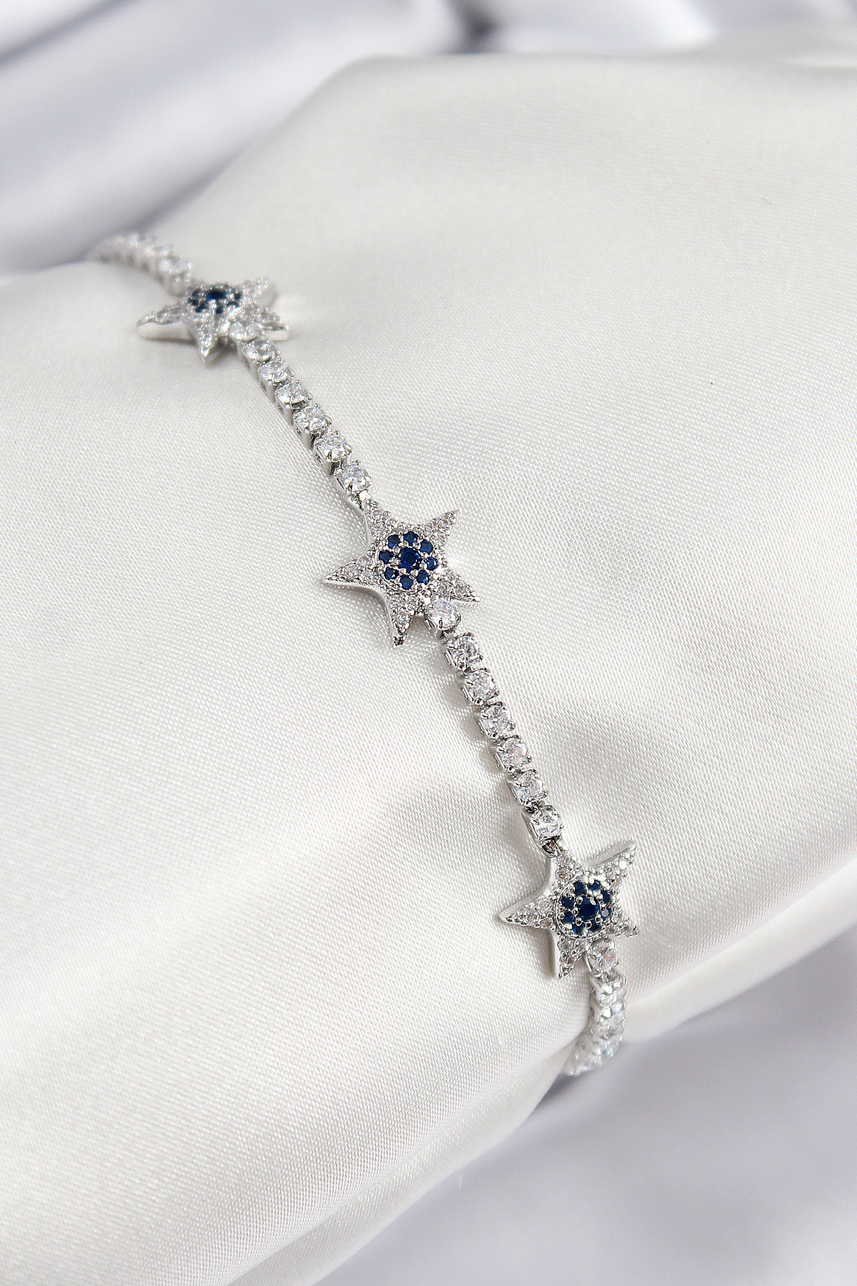 Pirinç Zirkon Taşlı Yıldız Model Gümüş Renk Kadın Bileklik