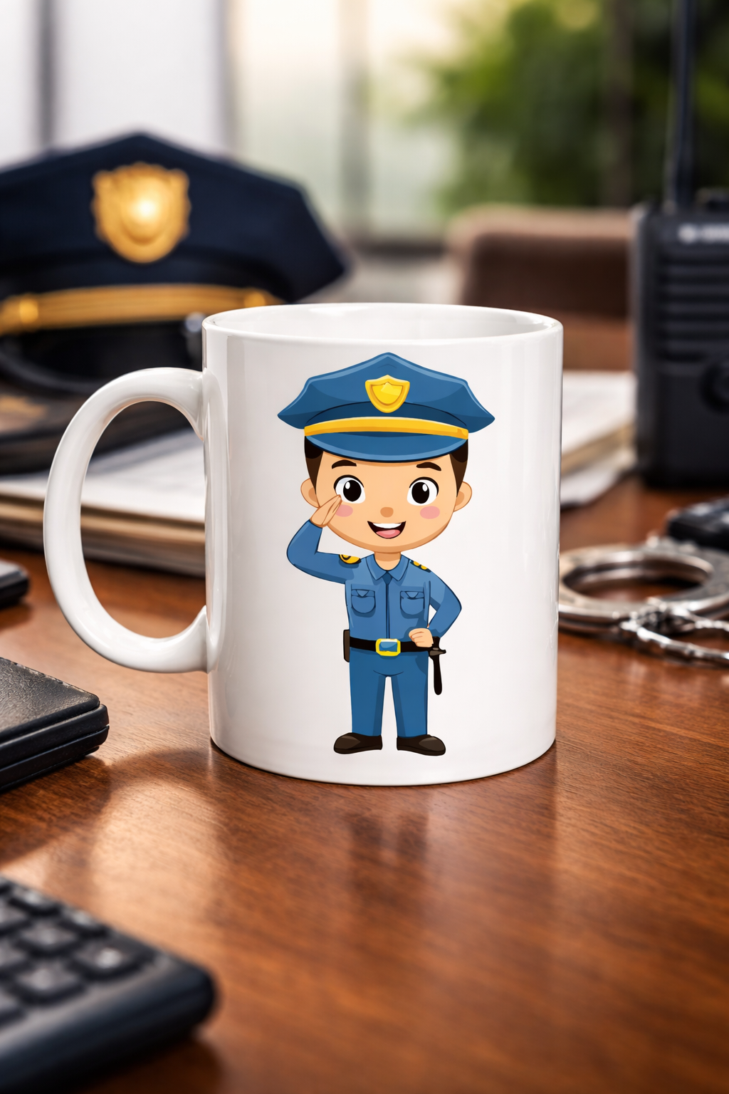 Polis üniformasıyla selam veren bu karakter, görevini büyük bir özveriyle yapan polislerimizi temsil eder. Bu yüzden kupa yalnızca bir bardak değil; aynı zamanda mesleğe duyulan saygının küçük ama anlamlı bir sembolüdür.