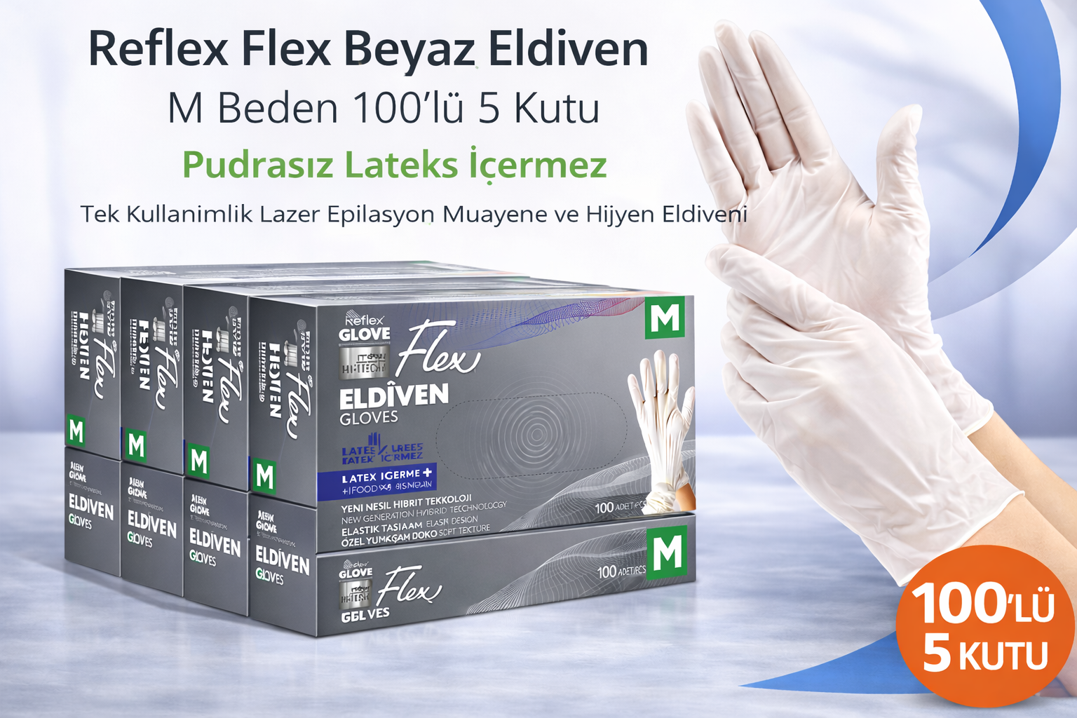 reflex flex eldiven, reflex flex beyaz eldiven, lazer epilasyon eldiveni, lazer eldiveni, reflex flex m beden, pudrasız beyaz eldiven, lateks içermeyen eldiven, tek kullanımlık eldiven, beyaz eldiven 500 adet, reflex flex 5 kutu, epilasyon eldiveni, estetisyen eldiveni, güzellik salonu eldiveni, hijyen eldiveni, latex free eldiven, hibrit eldiven, beyaz muayene eldiveni, reflex eldiven, m beden beyaz eldiven, profesyonel eldiven, toplu eldiven seti