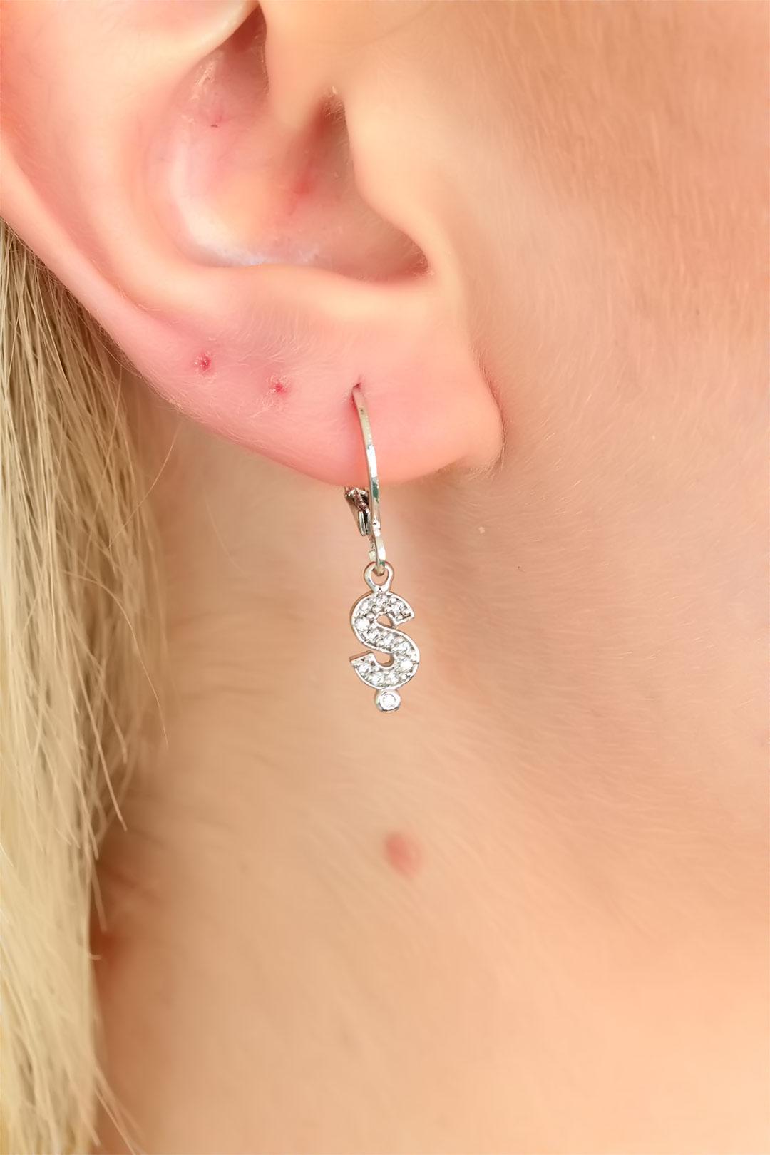 Silver Renk Zirkon Taşlı Ş Harf Bayan Küpe